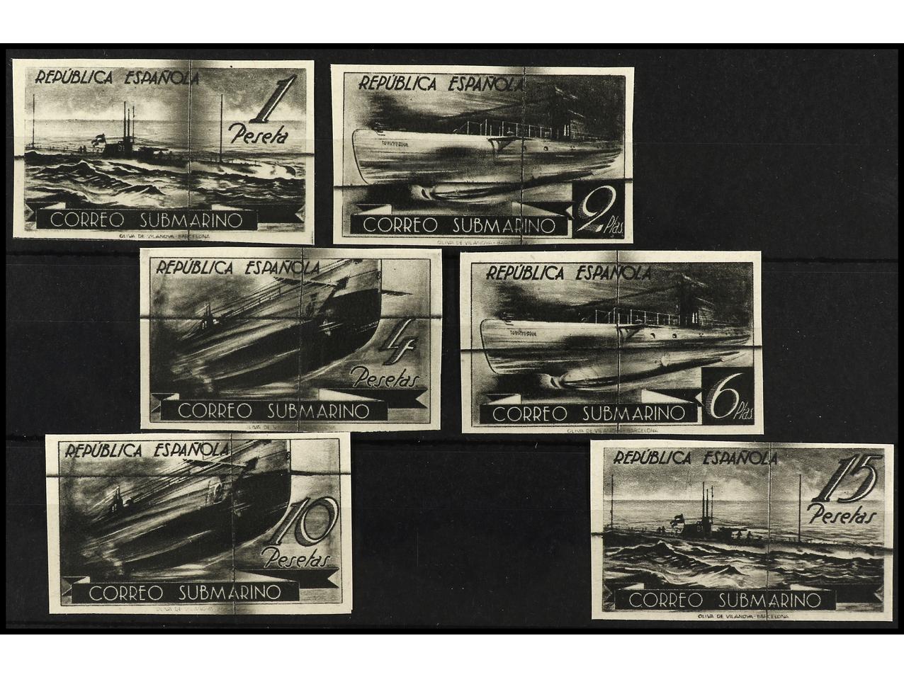ESPAÑA. SERIE COMPLETA, 6 valores. PRUEBA DE PLANCHA en negro. Ed.775PR/80PR. Cat. 185€. (Image1) (Image2)