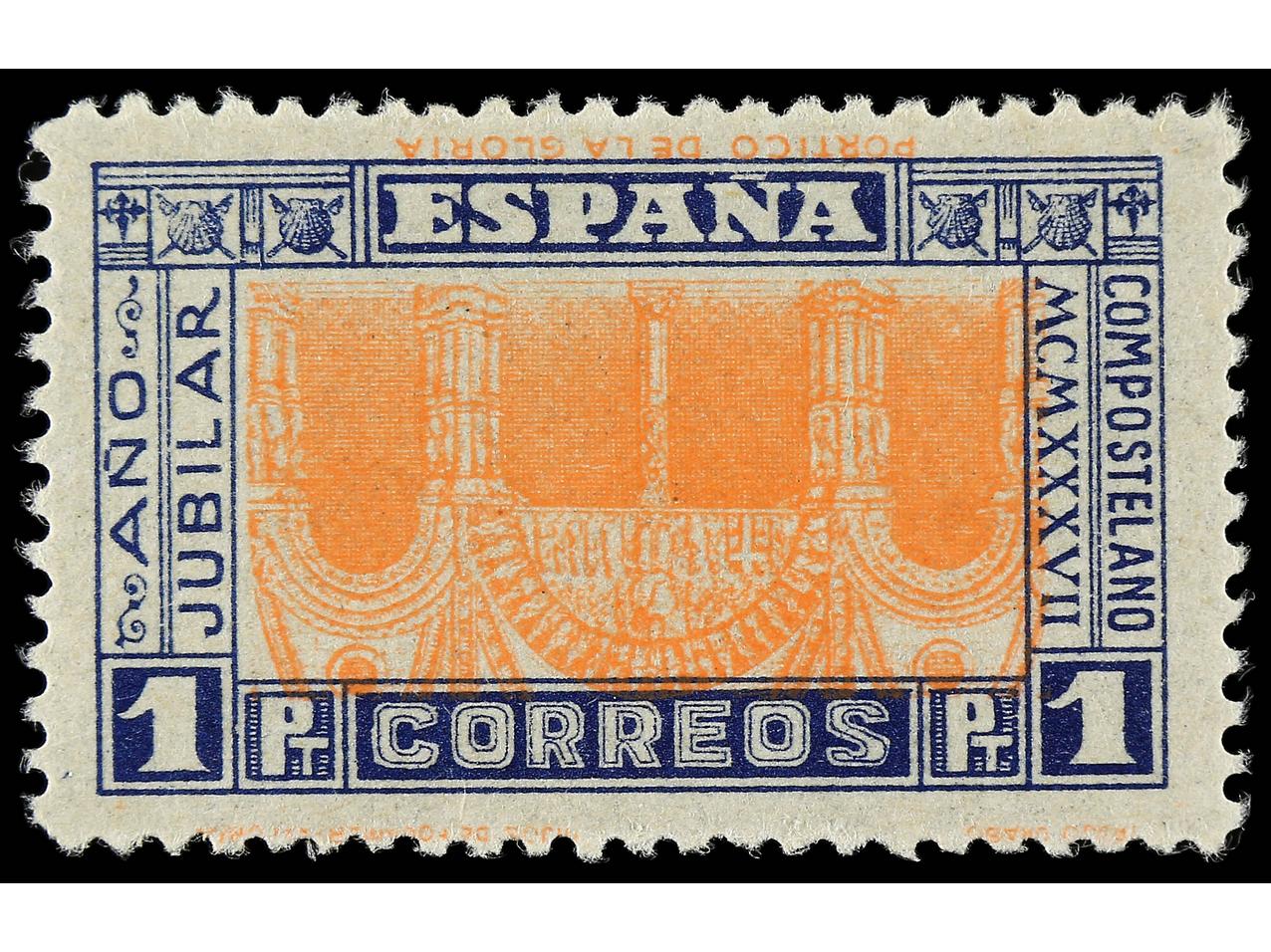 ESPAÑA. 1 pta. azul y naranja. CENTRO INVERTIDO SIN DENTAR. Borde de hoja. RARO y de LUJO. Ed.835eis. Cat. 1.300€. (Image1)