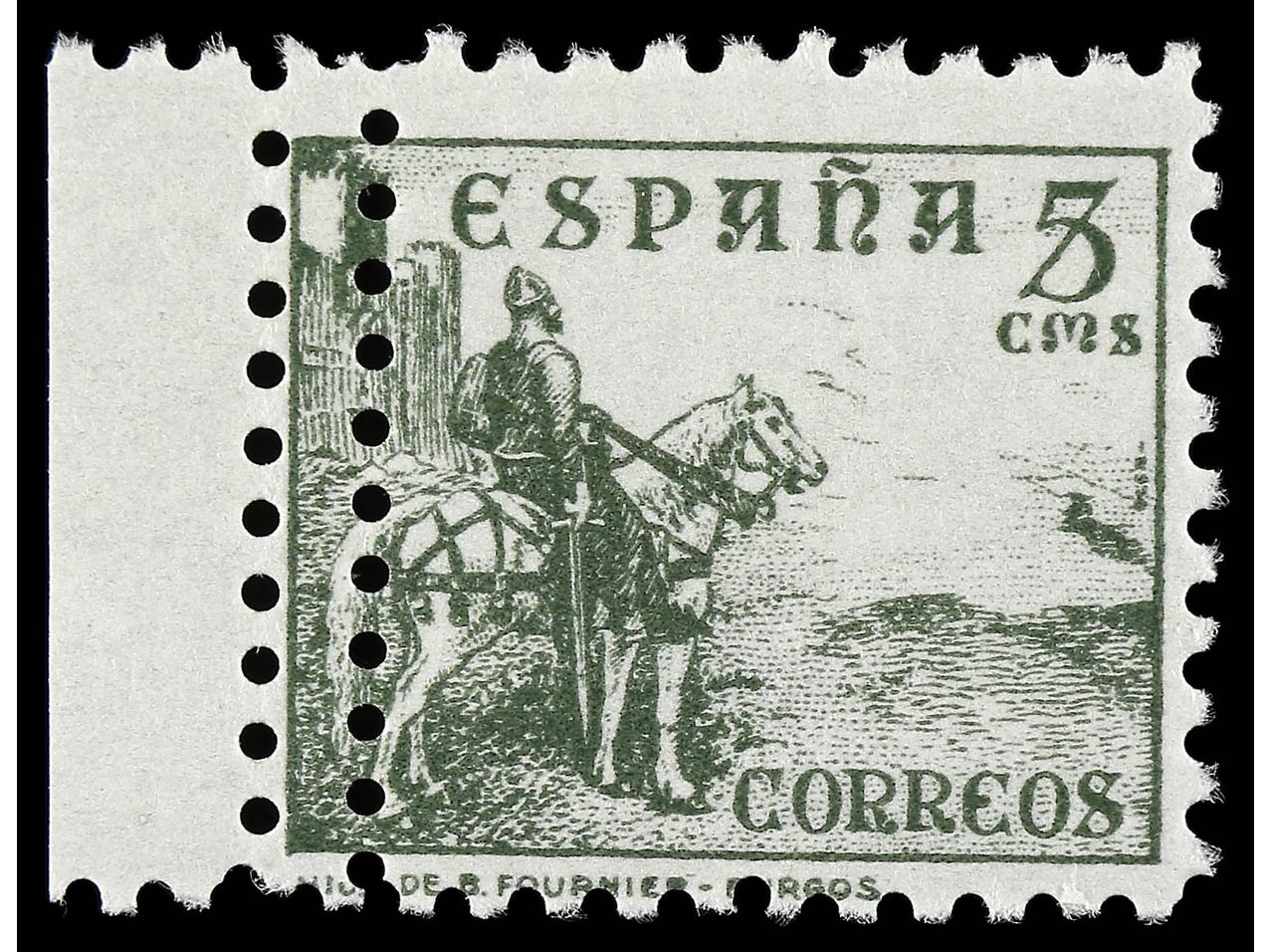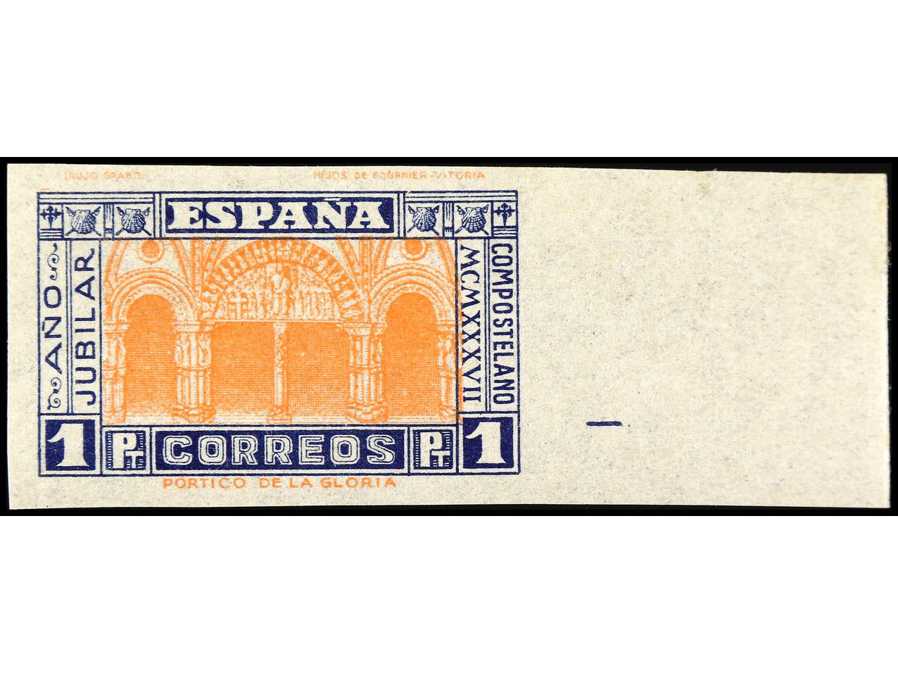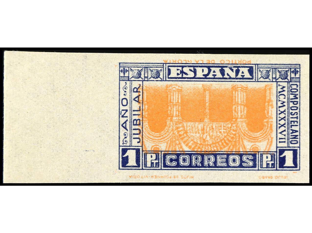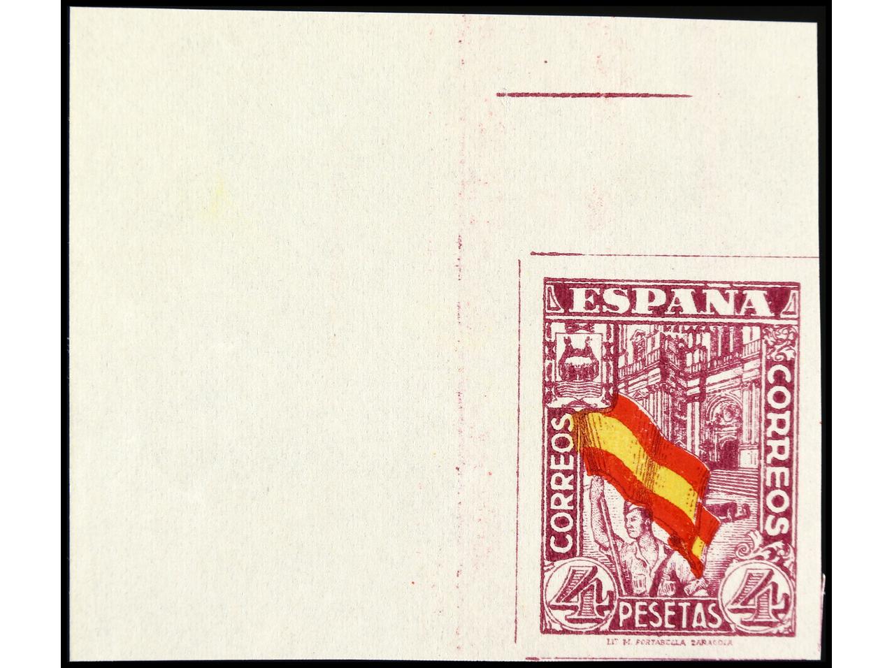 ESPAÑA. 4 pts. lila, rojo y amarillo. SIN DENTAR MARGEN IZQUIERDO. LUJO. Ed.812smi. Cat. +210€. (Image1)