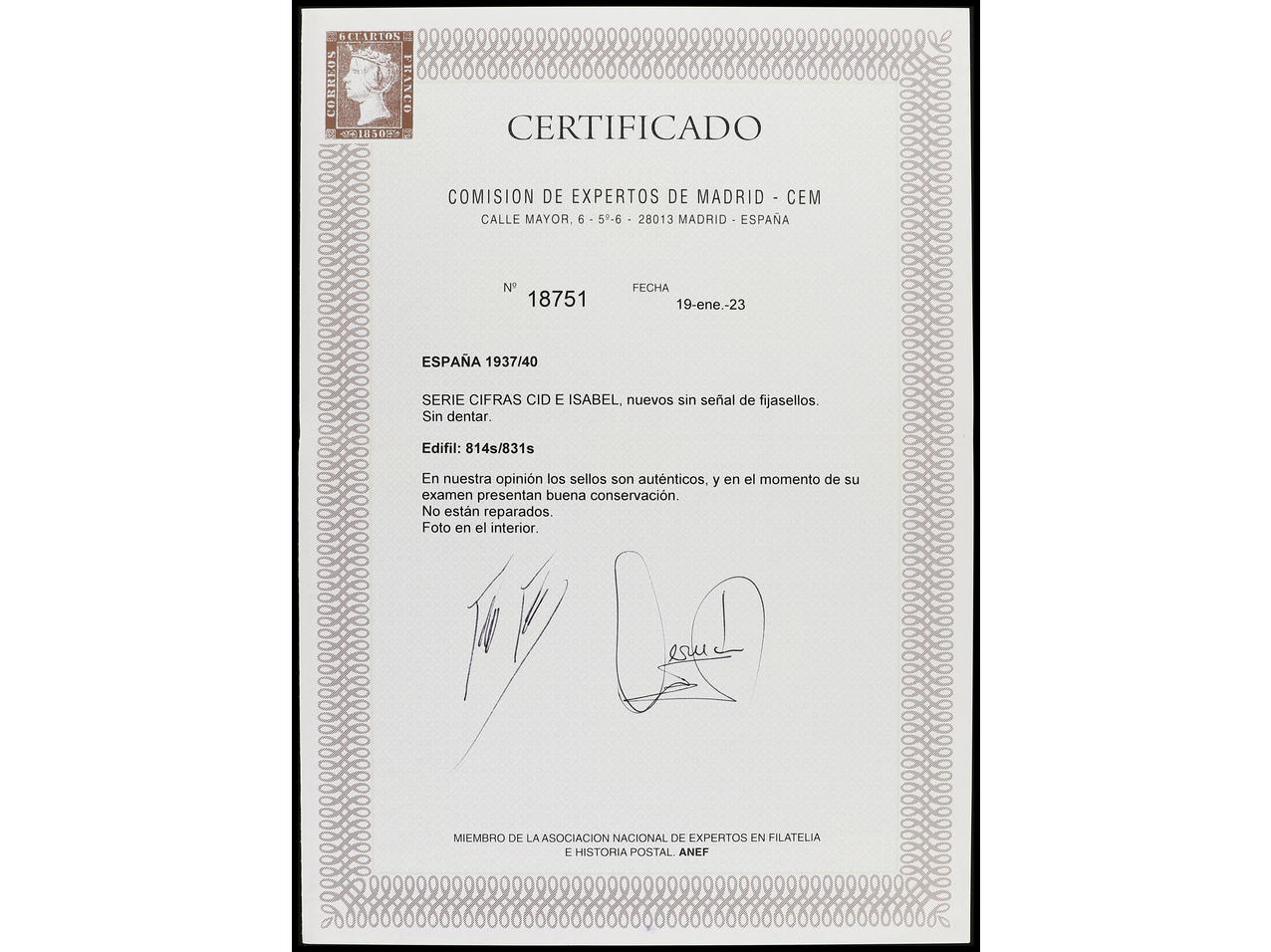 ESPAÑA. SERIE COMPLETA. 17 valores SIN DENTAR. RARA y de LUJO. Cert. CEM. Ed.815/31s. Cat. 730€. (Image1) (Image2)