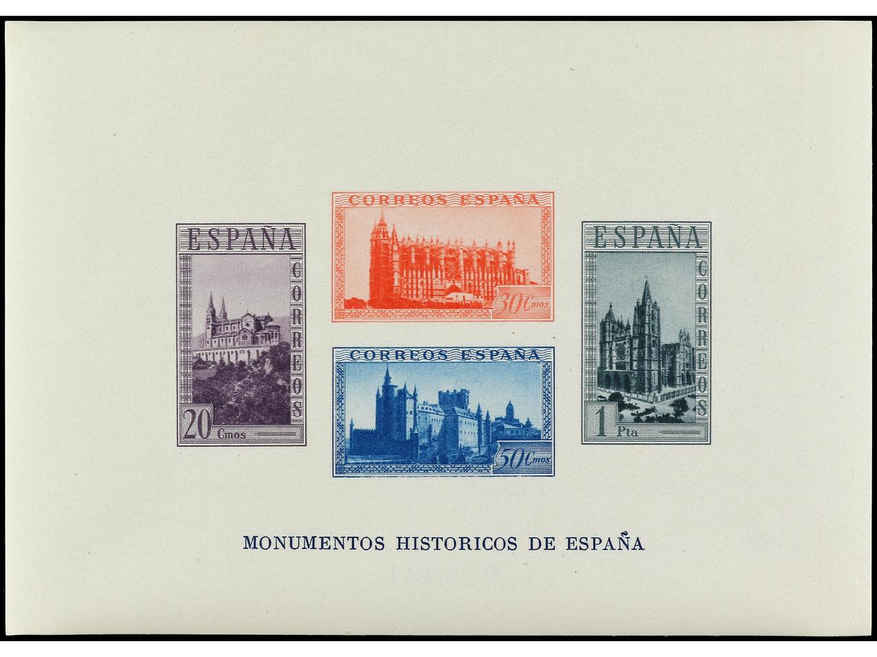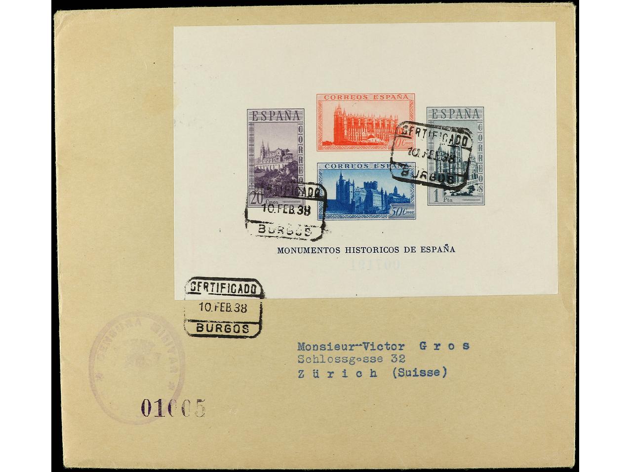 ESPAÑA. 1938. Hoja bloque Monumentos, sin dentar, en S.P.D circulado a SUIZA. Ed.848. (Image1) (Image2)