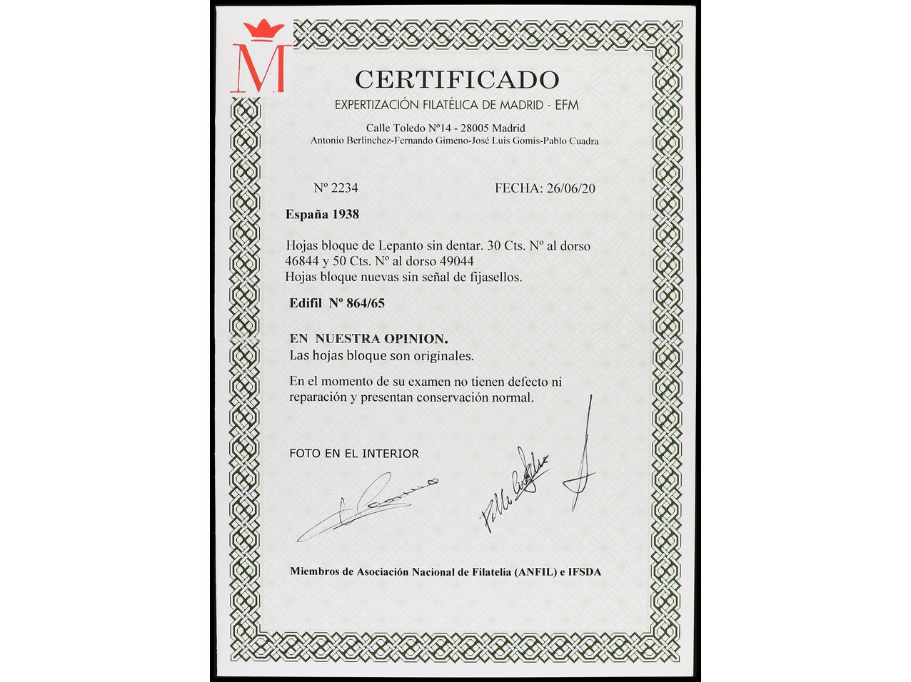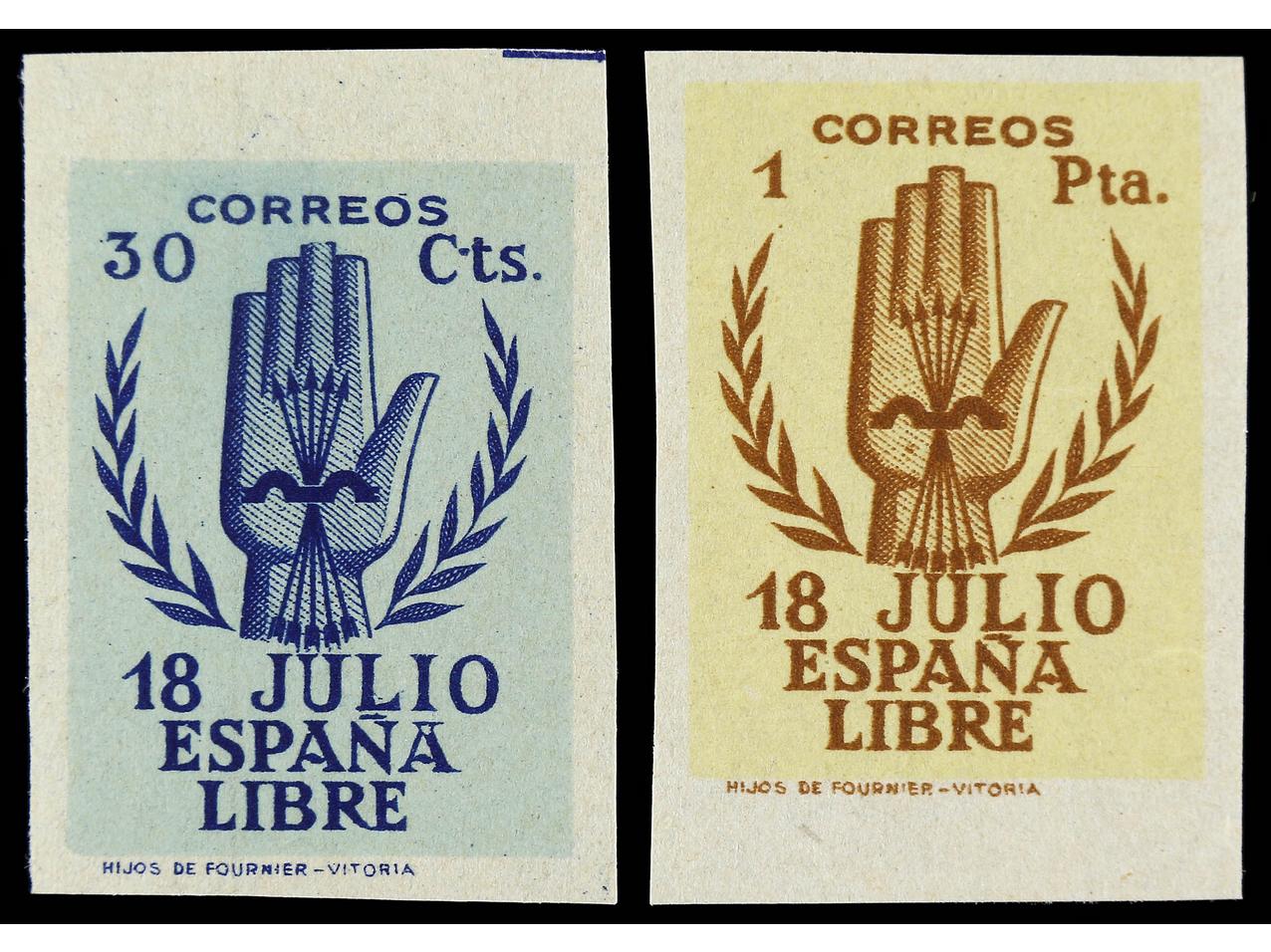 ESPAÑA. HB SIN DENTAR. Sellos sin fijasellos. Puntos habituales. Ed.864/5. Cat. 900€. (Image1) (Image2)