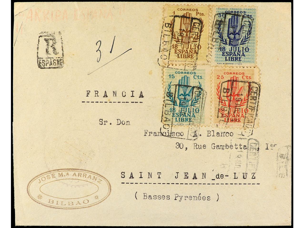 ESPAÑA. 1938. BILBAO a FRANCIA (al dorso llegada). Serie completa, mat. fechador. Ed.851/54. (Image1) (Image2)