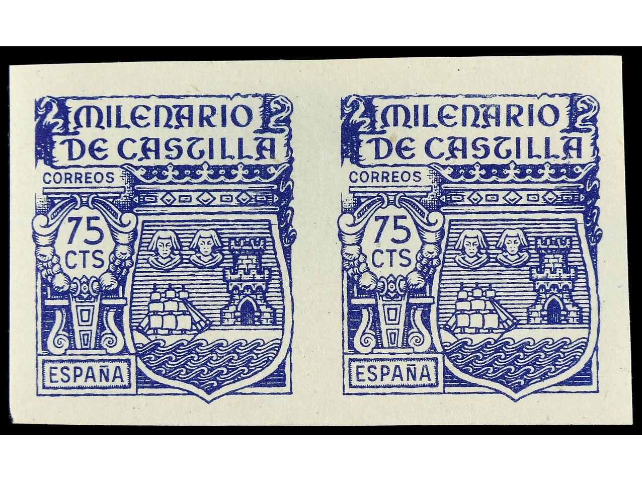 ESPAÑA. 75 cts. azul. Pareja SIN DENTAR. MUY RARA y de LUJO. Ed.982s (2). (Image1)