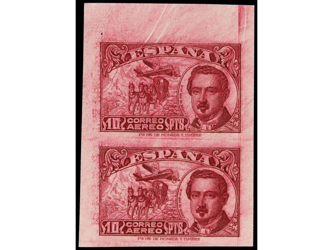ESPAÑA. 10 pts. carmín vinoso. ENSAYO DE COLOR en pareja sin dentar. Ed.990s. (Image1)