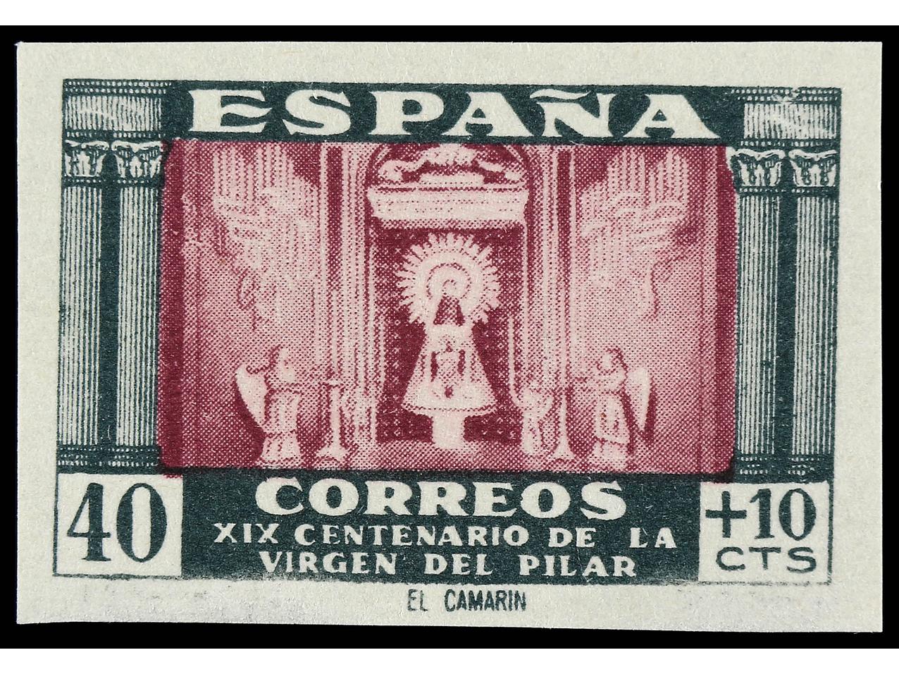 ESPAÑA. 40 c. + 10 c. verde y carmín, SIN DENTAR. Ed.998s. Cat. 166€. (Image1)