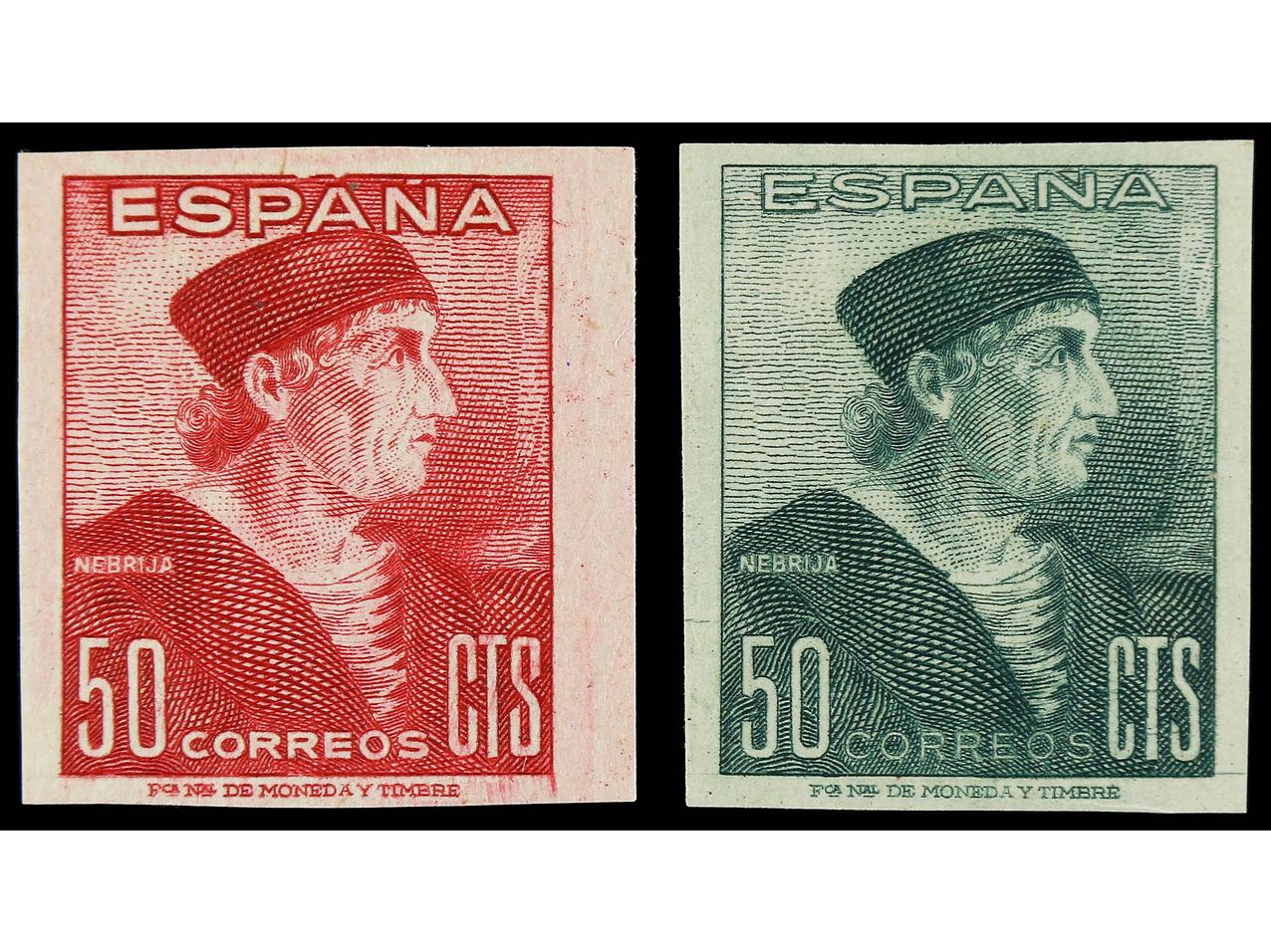 ESPAÑA. 50 c. rosa y 50 c. verde (leve pliegue). CAMBIOS DE COLOR SIN DENTAR. Ed.1002ccas y 1002ccbs. Cat. 345€. (Image1) (Image2)