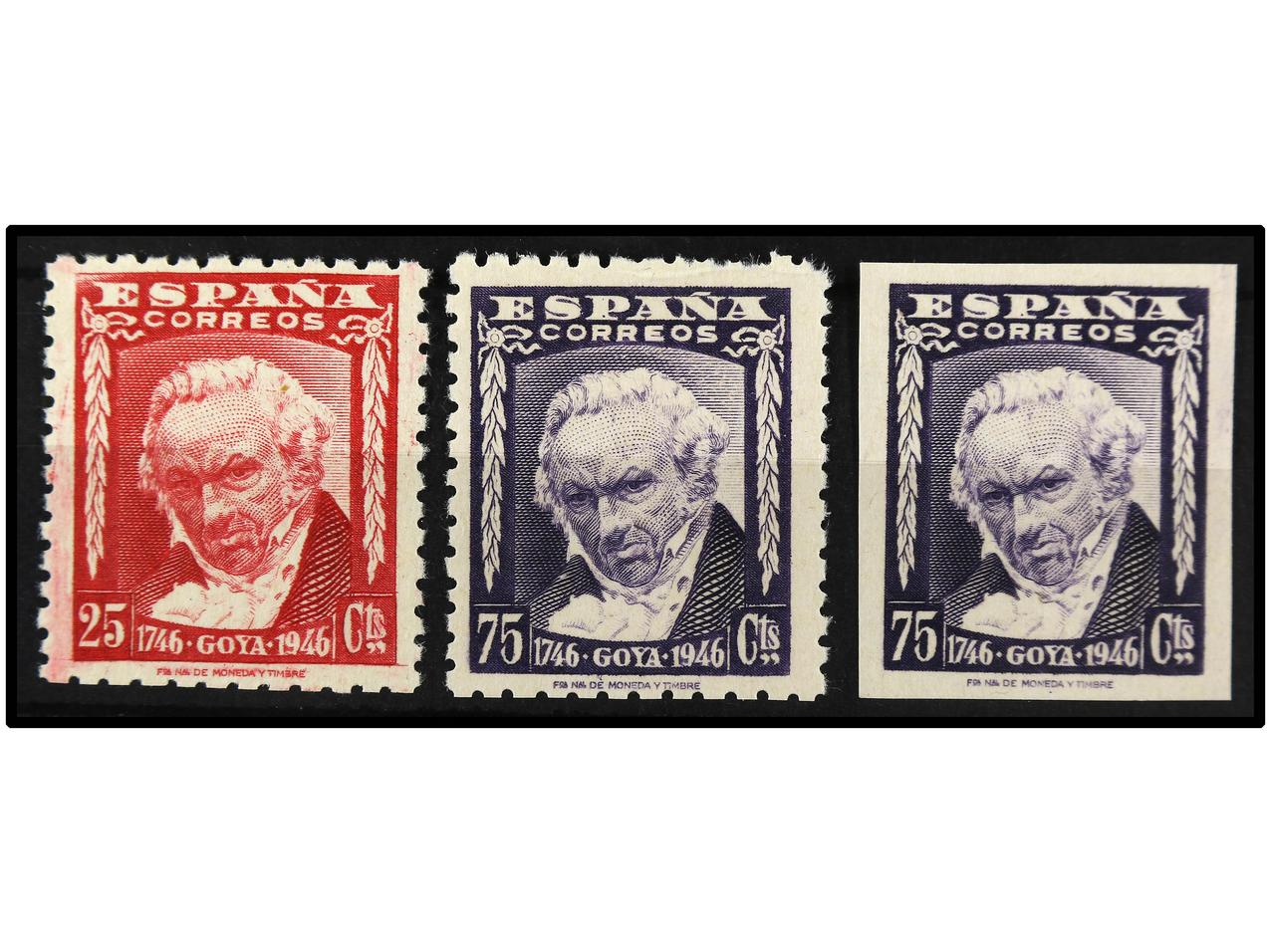 ESPAÑA. 25 c. rosa, 75 c. violeta dentado y sin dentar. CAMBIOS DE COLOR. Ed.1005cc, 1007cca, 1007ccas. Cat. 540€. (Image1) (Image2)