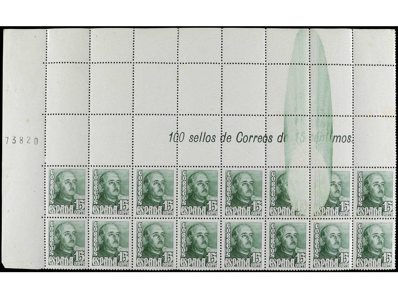 ESPAÑA. 15 cts. verde. Bloque de 16 VARIEDAD DE IMPRESIÓN. Algún sello sombras del tiempo. Ed.1021 (16). (Image1)