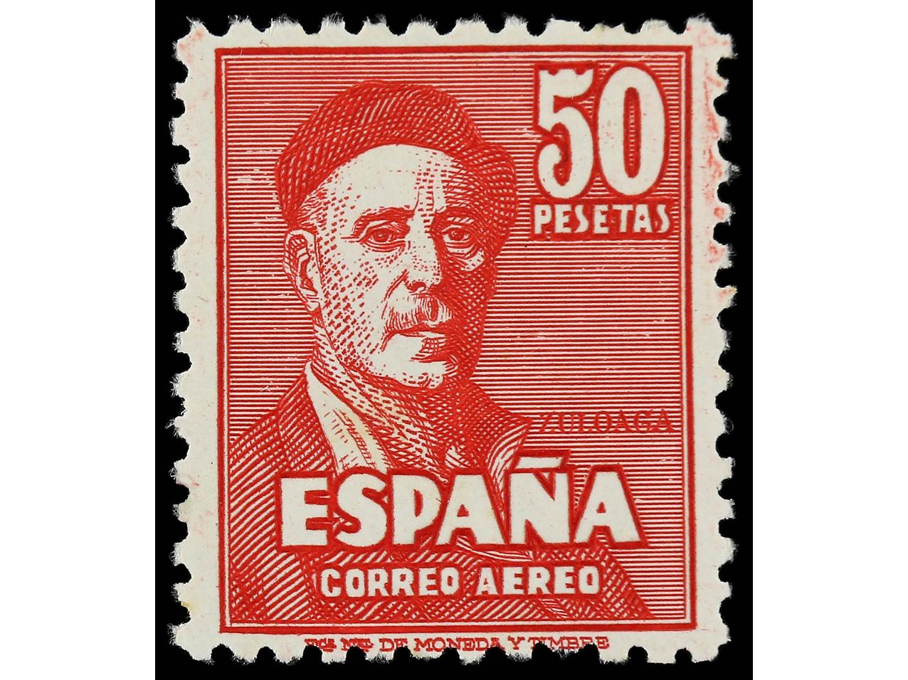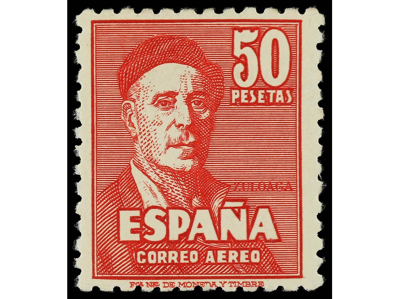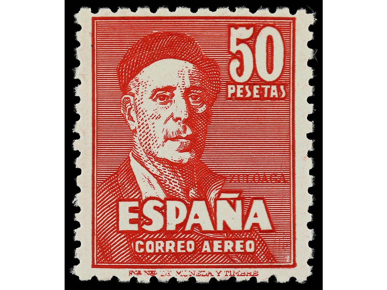 ESPAÑA. 50 cts. rosa carmín claro. COLOR CAMBIADO. MUY RARO y de LUJO. Dictamen GRAUS (fotocopia de la pareja de donde procede). Ed.1022cca. Cat. 850€.