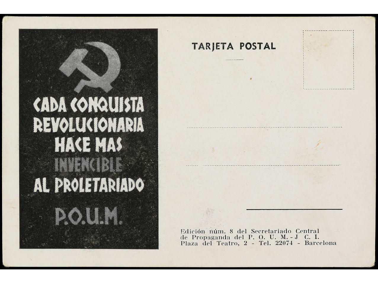 ESPAÑA GUERRA CIVIL. TARJETA POSTAL editada por el P.O.U.M. ´Cada conquista revolucionaria hace más invencible al proletariado´. (Image1) (Image2)
