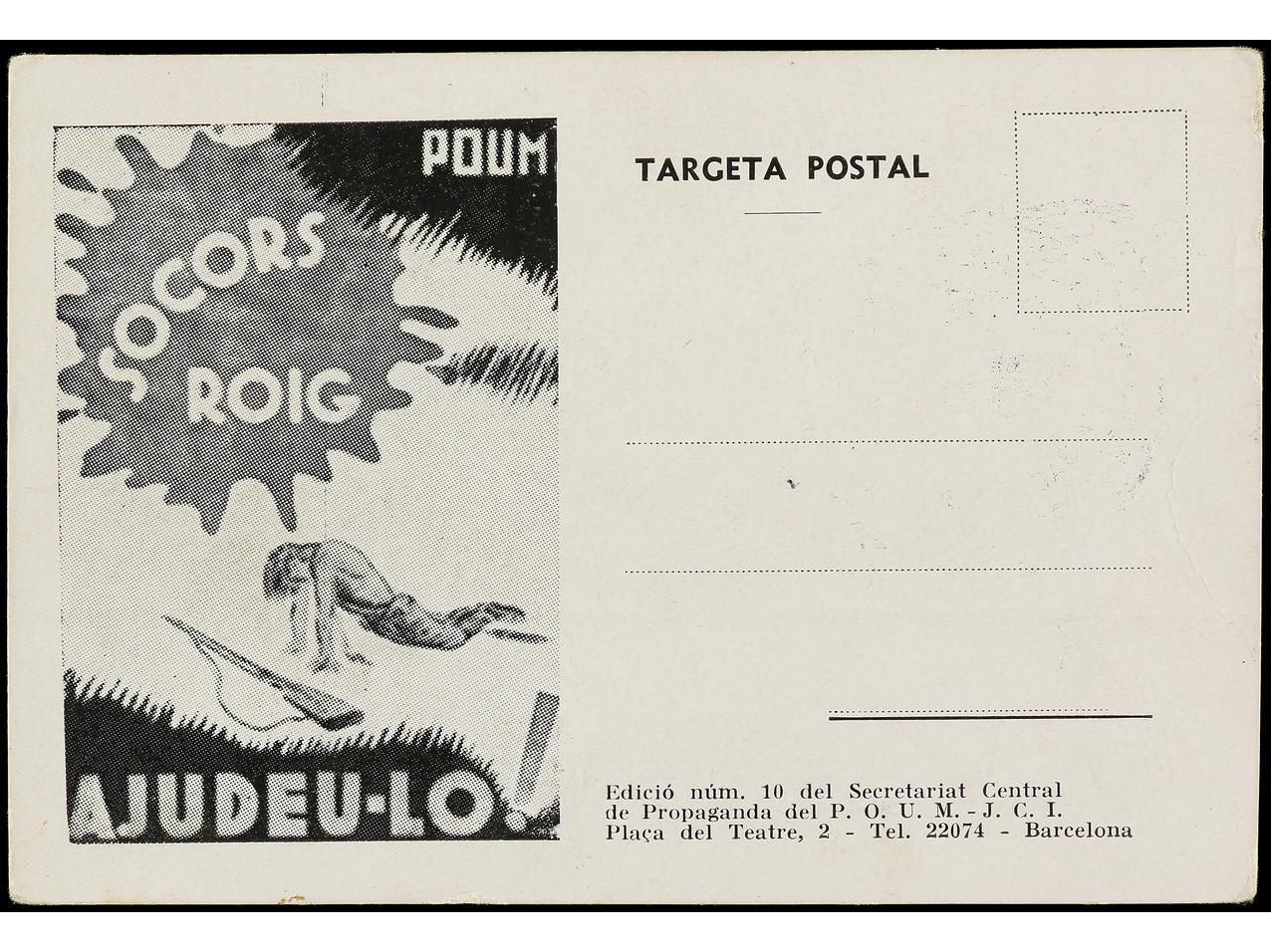 ESPAÑA GUERRA CIVIL. TARJETA POSTAL editada por el P.O.U.M. ´Socors Roig, Ajudeu-lo´. (Image1) (Image2)