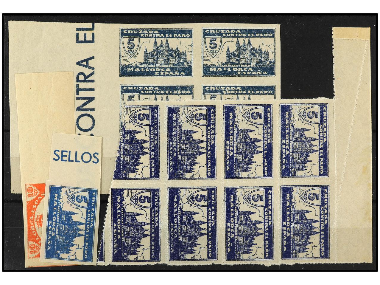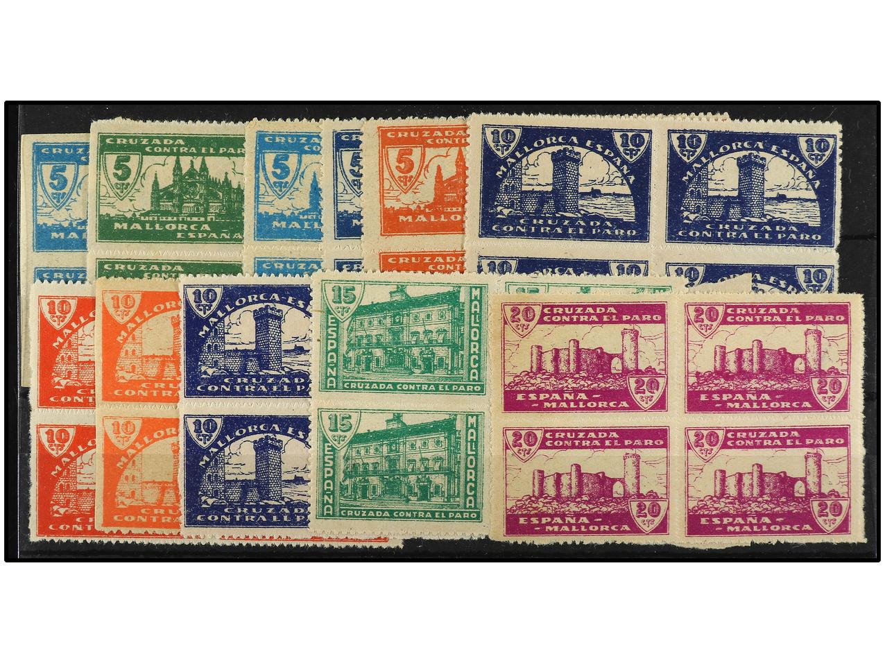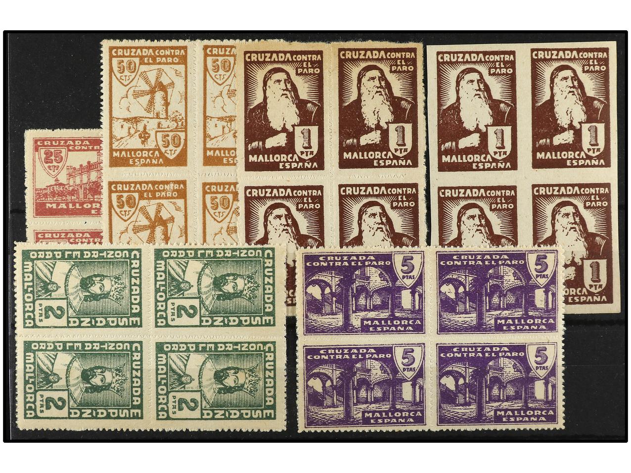 ESPAÑA GUERRA CIVIL. PALMA DE MALLORCA. Cruzada contra el paro. Serie completa con alguna variedad en bloques de cuatro. (Image1) (Image2)
