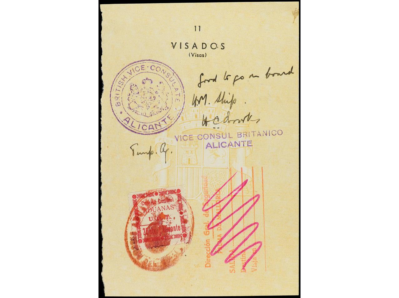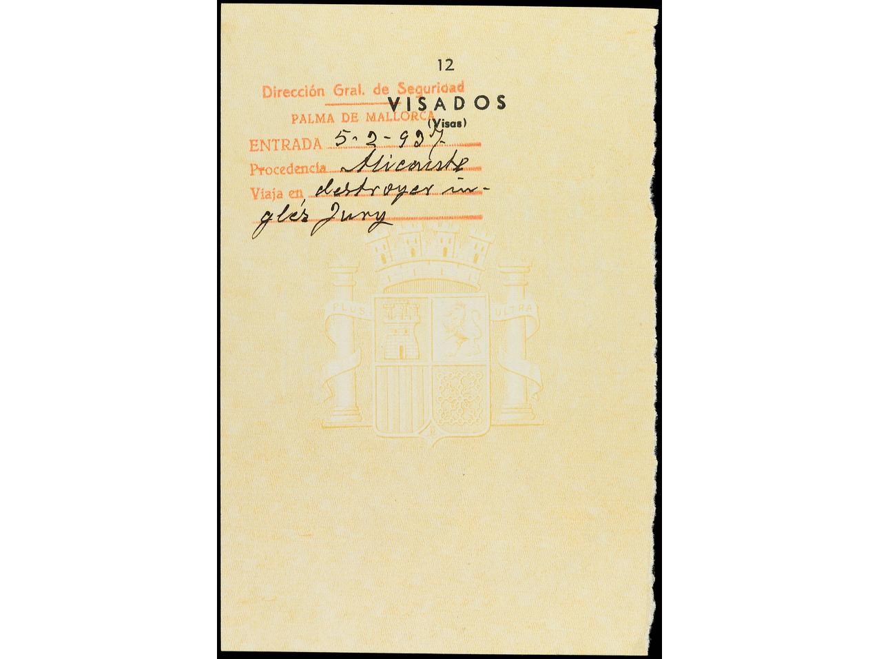 ESPAÑA GUERRA CIVIL. ZONA REPUBLICANA. ALICANTE. Hoja de pasaporte con viñeta COMITÉ CONTROL ADUANAS U.G.T / ALICANTE/ 25 cts. en rojo. MUY RARA. Allepuz 60.