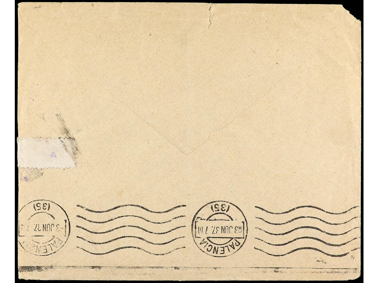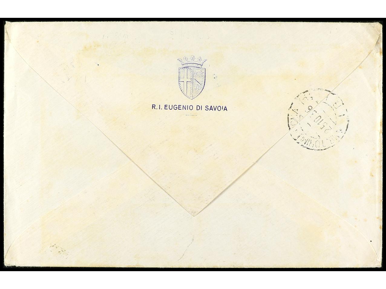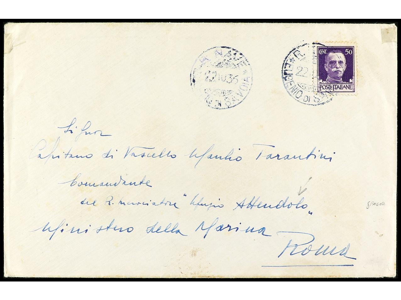 ESPAÑA GUERRA CIVIL. 1936. Sobre con membrete al dorso del buque italiano ´EUGENIO DI SAVOIA´ en misión de no intervención en aguas españolas durante la guerra civil. Circulado a ROMA con sello de 50 c., mat. R. NAVE/EUGENIO DI SAVOIA.