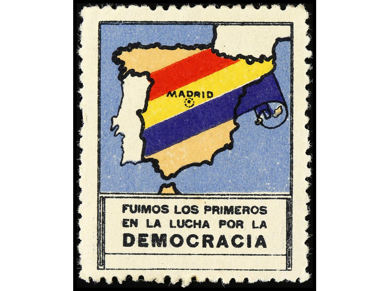 ESPAÑA GUERRA CIVIL. MADRID. Multicolor sin facial. FUIMOS LOS PRIMEROS EN LA LUCHA POR LA DEMOCRACIA. Allepuz 61, Domenech 7. MUY RARA. (Image1)