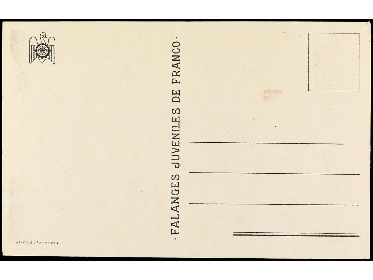 ESPAÑA GUERRA CIVIL. ZONA NACIONAL. Tarjeta Postal ilustrada, FALANGES JUVENILES DE FRANCO. RARA. (Image1) (Image2)