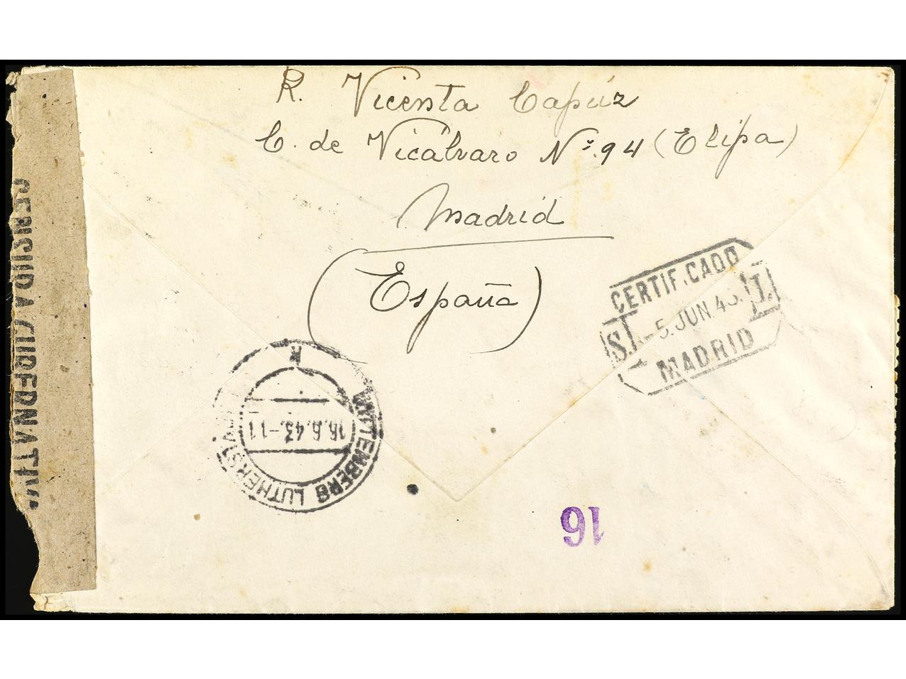 ESPAÑA GUERRA CIVIL. 1943. Sobre de MADRID a un prisionero/trabajador forzoso español, en el campo nazi de WITTEMBERG (Alemania). En este campo se fabricaban aviones de combate para la LUFTWAFFE. Rara la correspondencia dirigida a