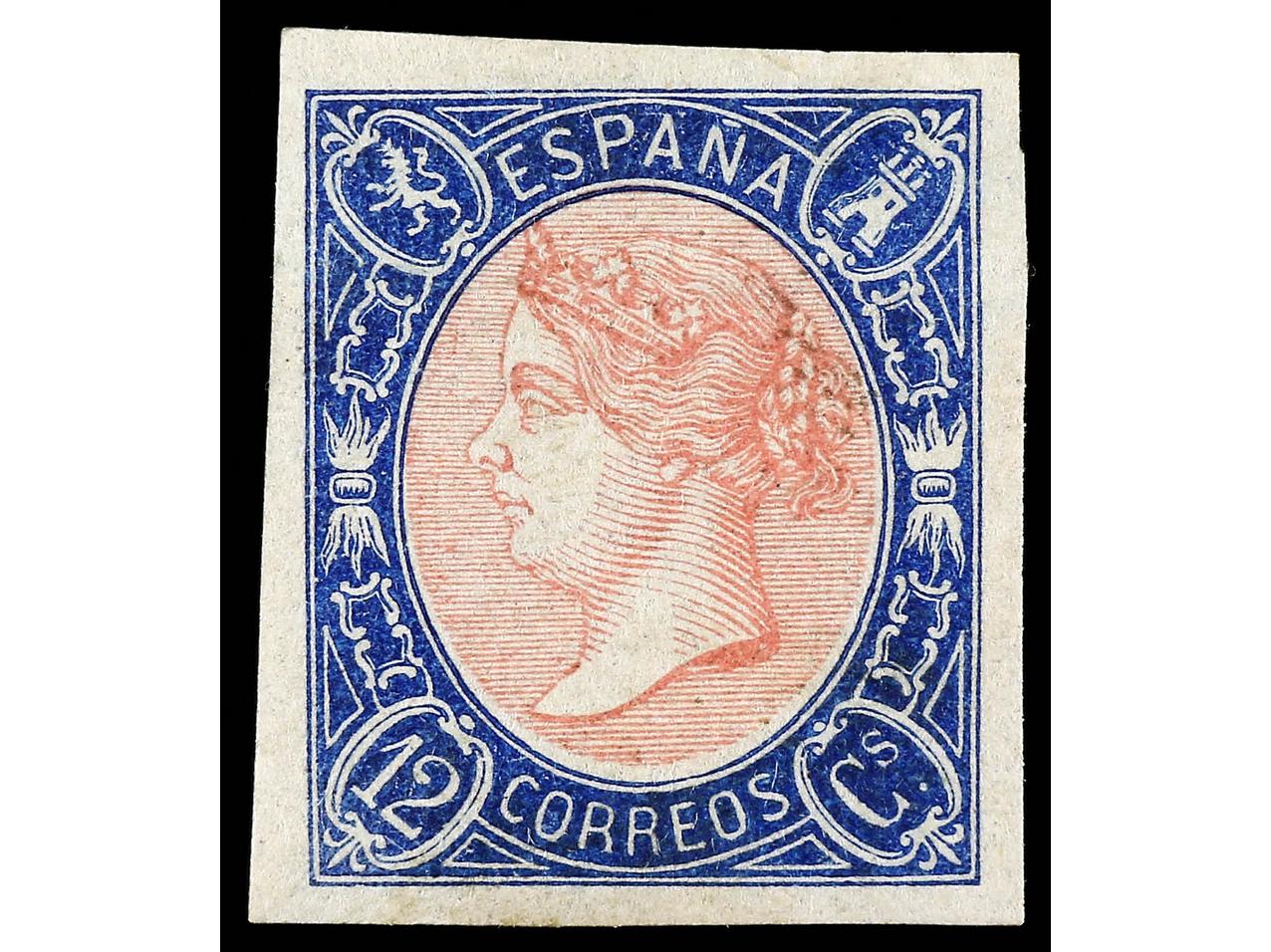 ESPAÑA. 12 cuartos azul y rosa. PIEZA DE LUJO. Ed.70. Cat. 550€. (Image1)