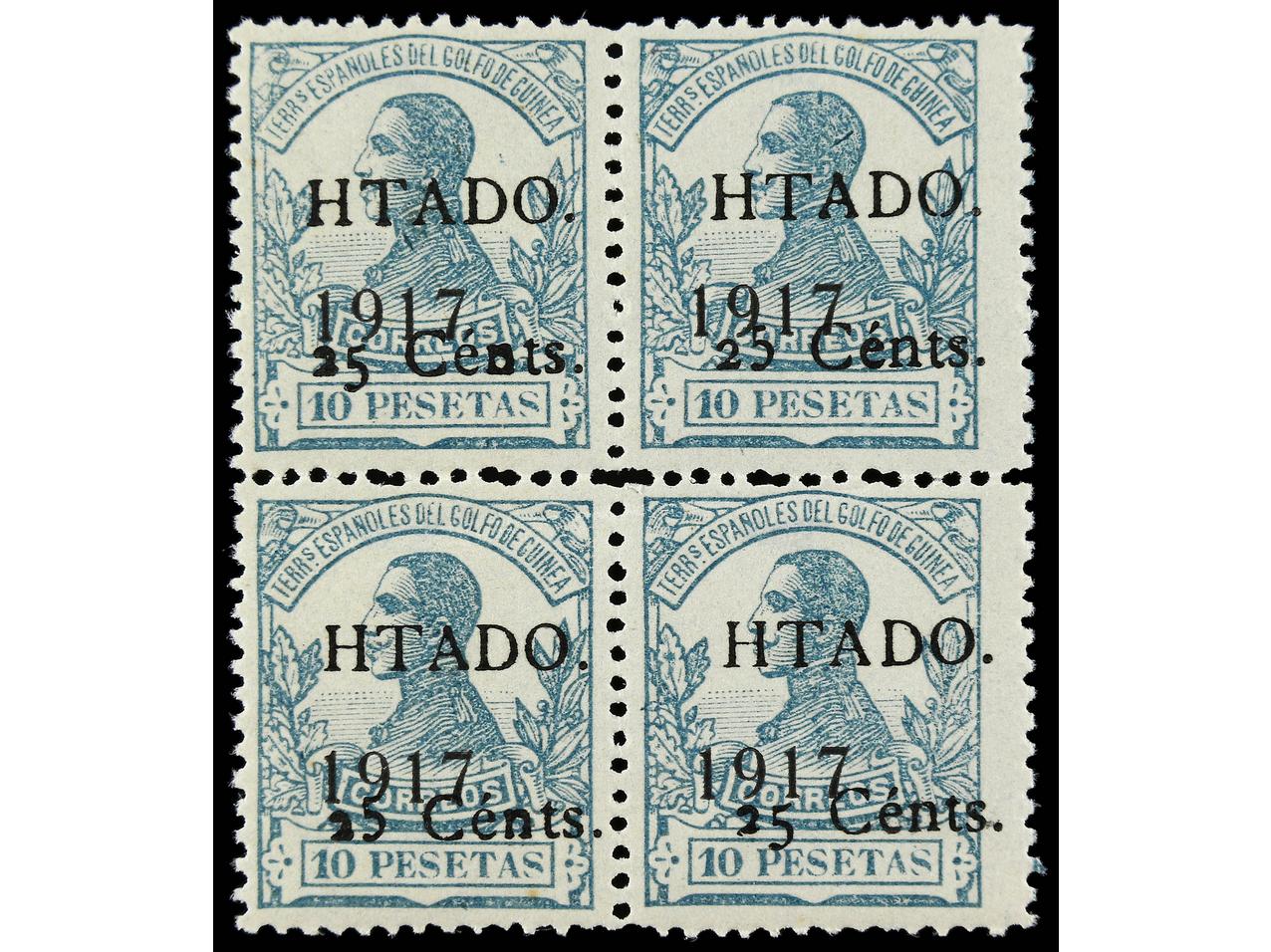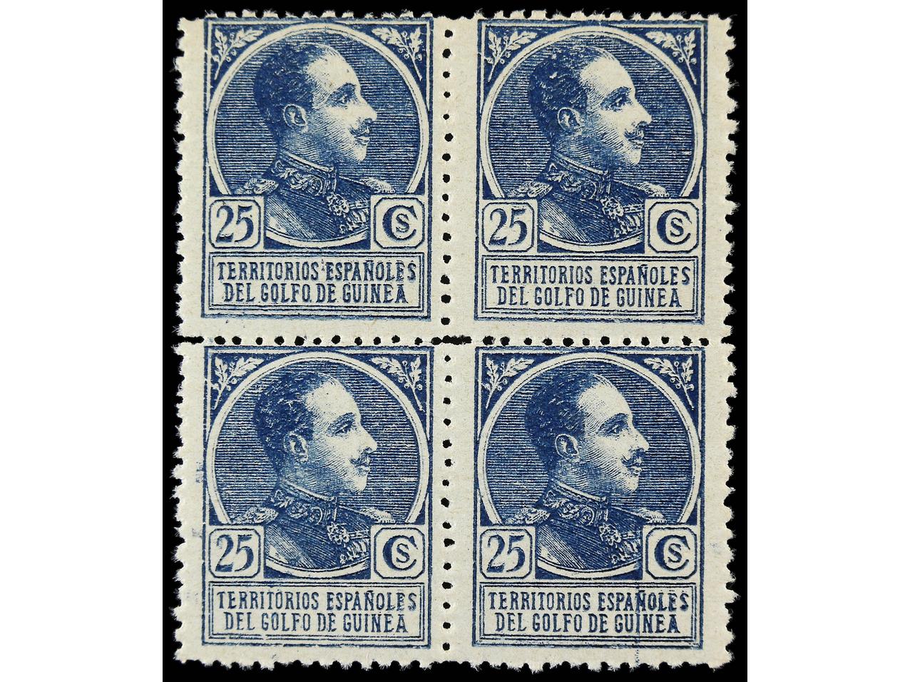 COLONIAS ESPAÑOLAS: GUINEA. 25 céntimos azul. NO EXPENDIDO. Bloque de cuatro. Ed.NE 10A. Cat. +600€. (Image1)