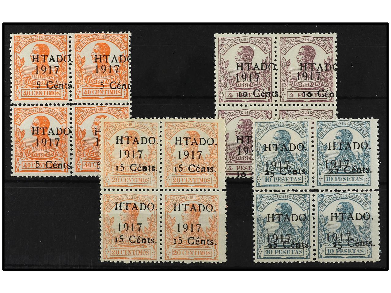 COLONIAS ESPAÑOLAS: GUINEA. SERIE COMPLETA, 4 valores en BLOQUES DE CUATRO. Bien centrados. MUY RAROS en esta calidad. Ed.124/7. Cat. +1.800€.