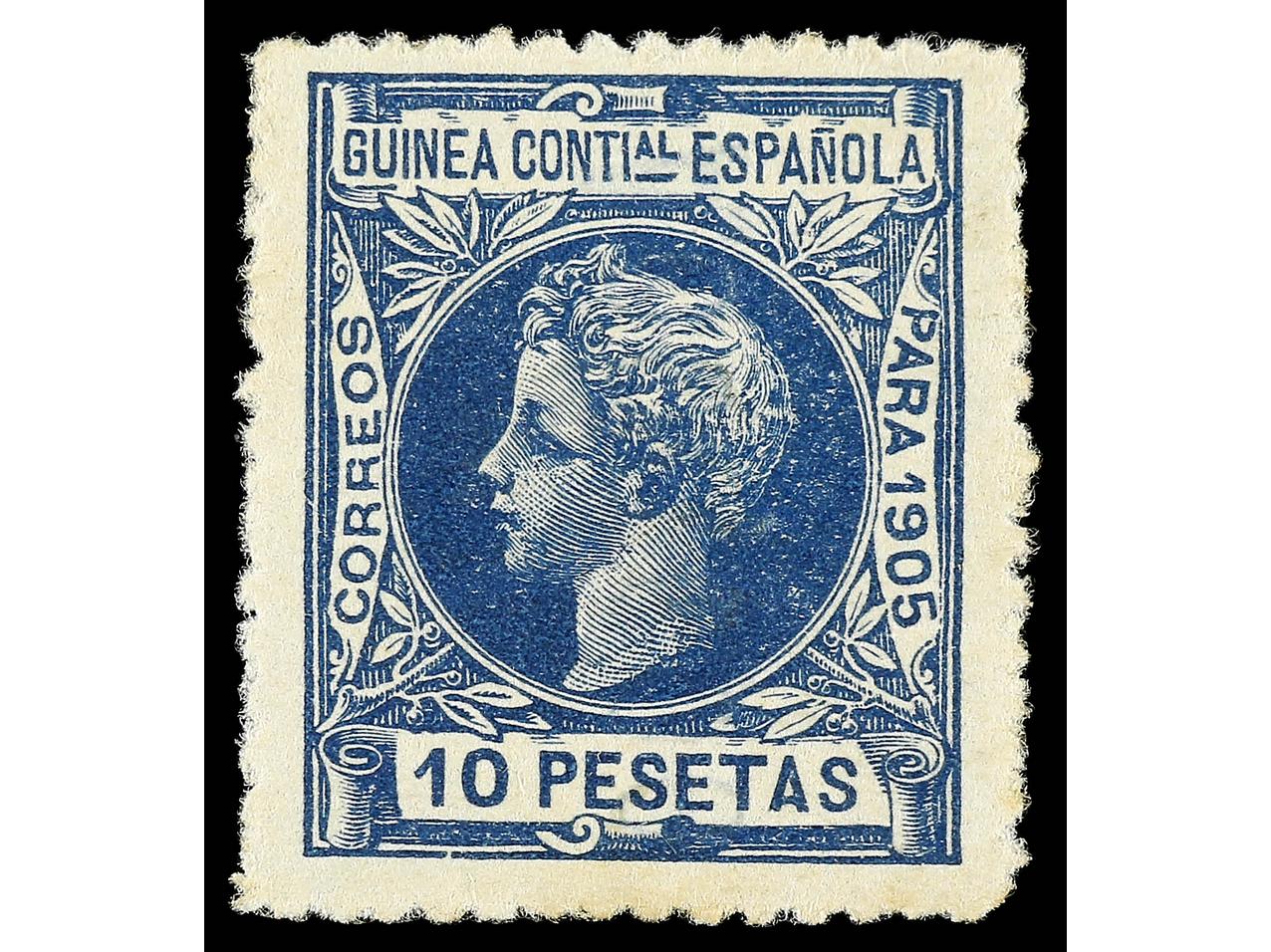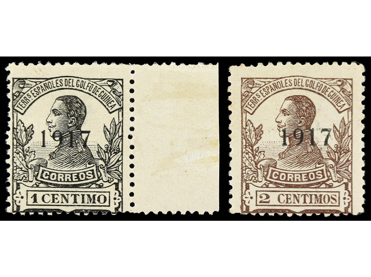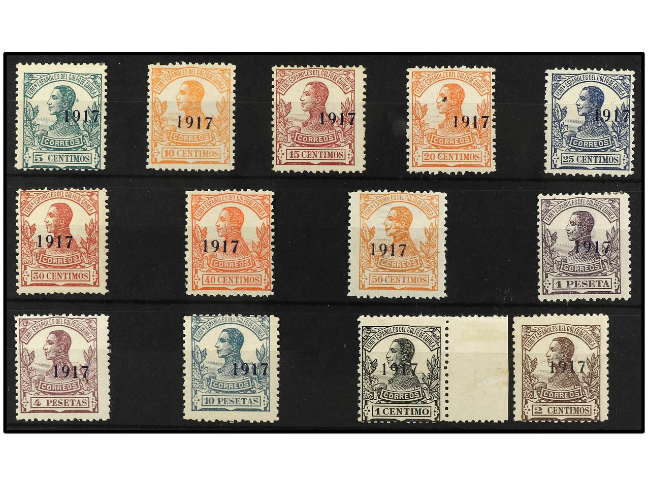 COLONIAS ESPAÑOLAS: GUINEA. SERIE COMPLETA, 18 valores. RARA. Mayoría numeración ceros. 75 cts. y 3 pesetas sombras del tiempo. Cert. CEM. Ed.9/26. Cat. 1.400€.