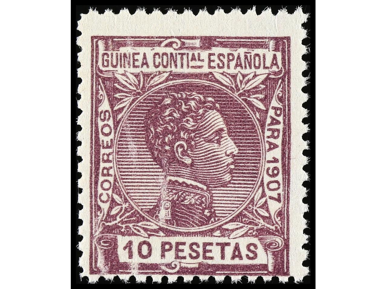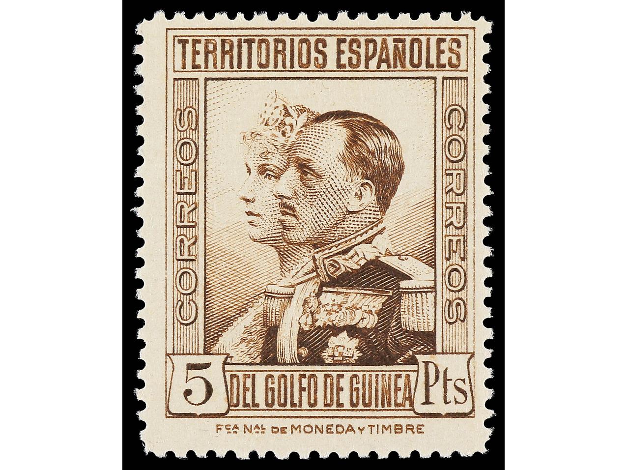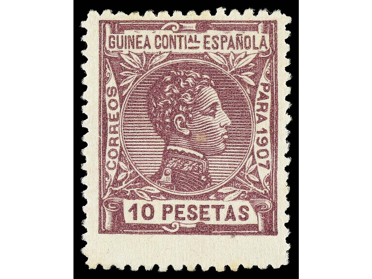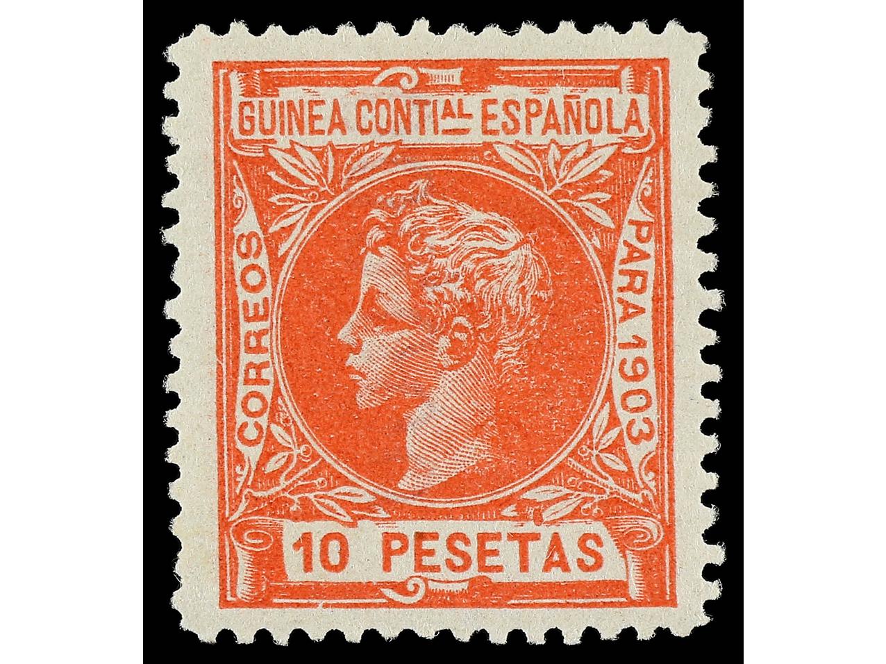 COLONIAS ESPAÑOLAS: GUINEA. SERIE COMPLETA, 18 valores. RARA. Mayoría numeración ceros. 75 cts. y 3 pesetas sombras del tiempo. Cert. CEM. Ed.9/26. Cat. 1.400€.