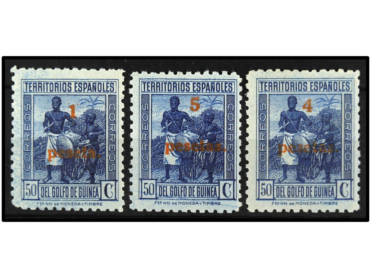COLONIAS ESPAÑOLAS: GUINEA. SERIE COMPLETA, 3 valores NO EXPENDIDO. Valor clave sin fijasellos. Ed.NE 12/4. Cat. +285€. (Image1) (Image2)