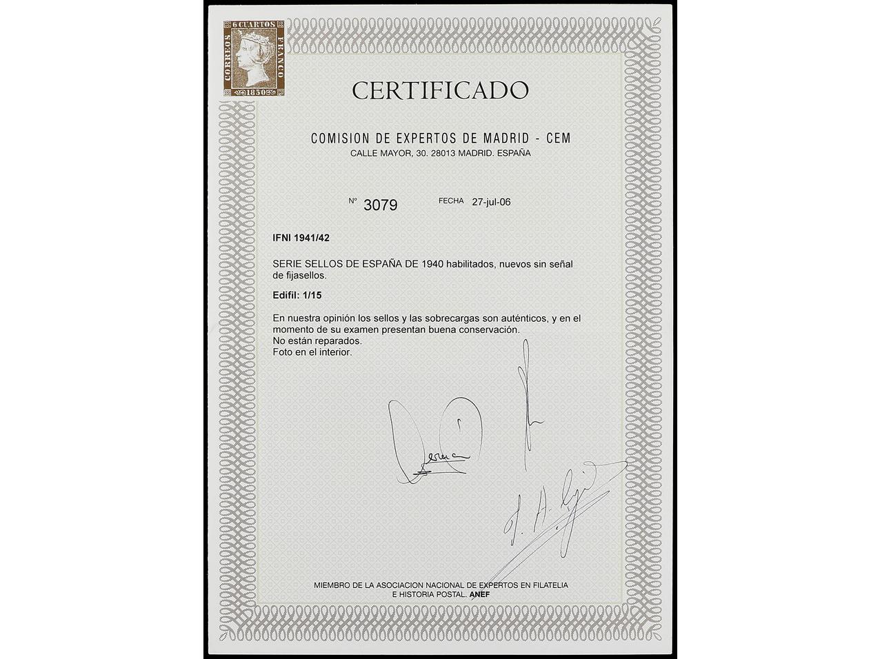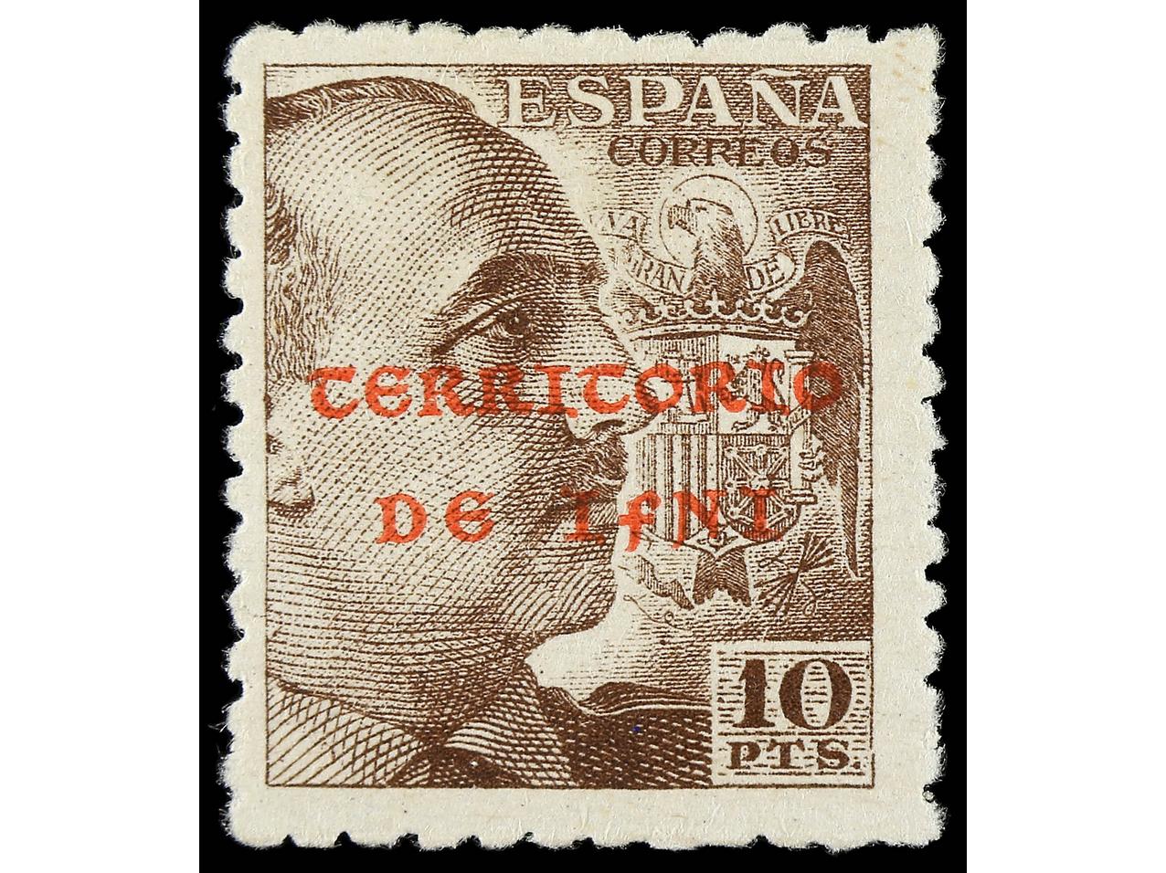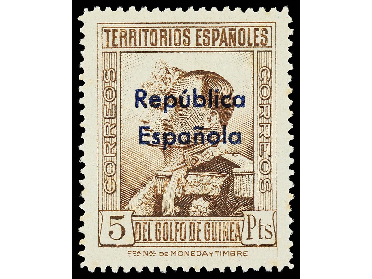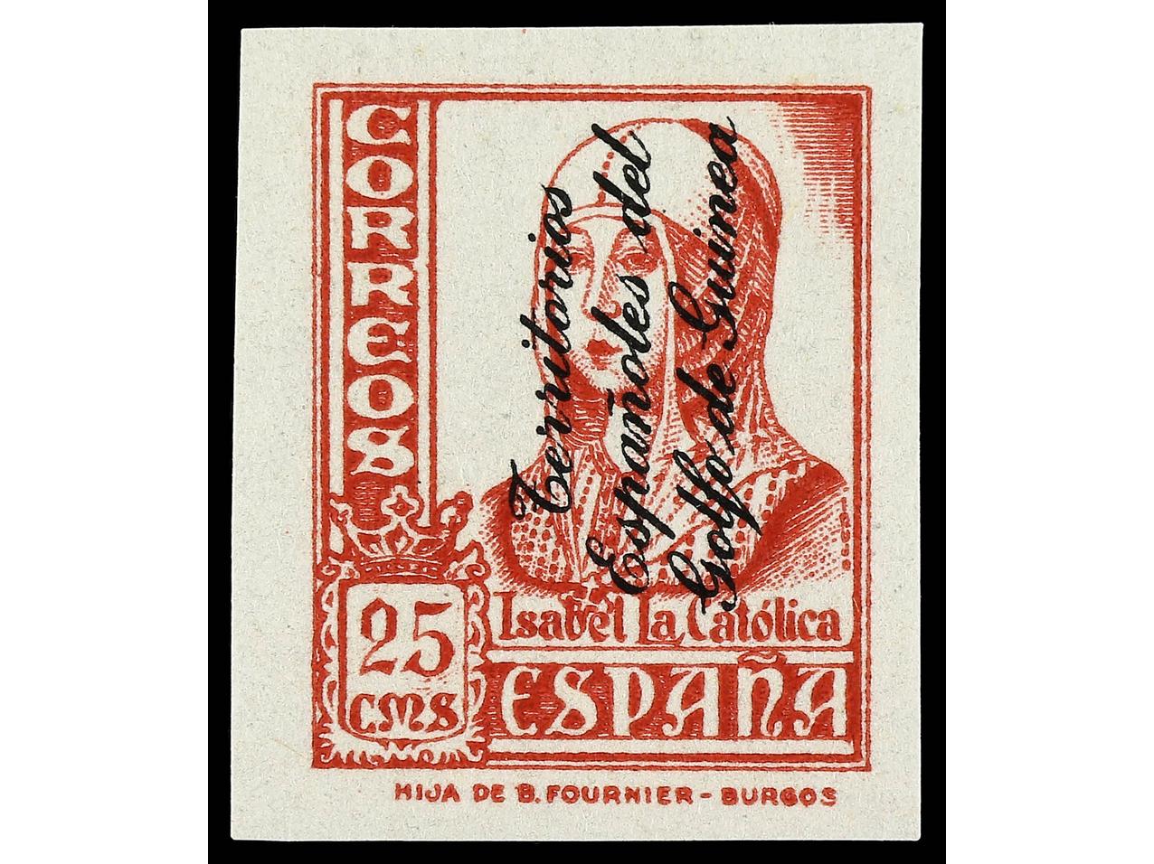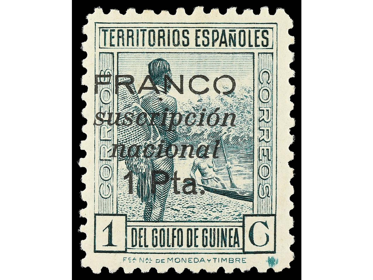 COLONIAS ESPAÑOLAS: GUINEA. JUEGO COMPLETO. 12 valores en parejas con numeración A000,000, un sello variedad ´Españolo´ (uno por hoja). RARÍSIMA VARIEDAD COMBINADA, probablemente ÚNICA. Ed.232M/43N. (Image1) (Image2)