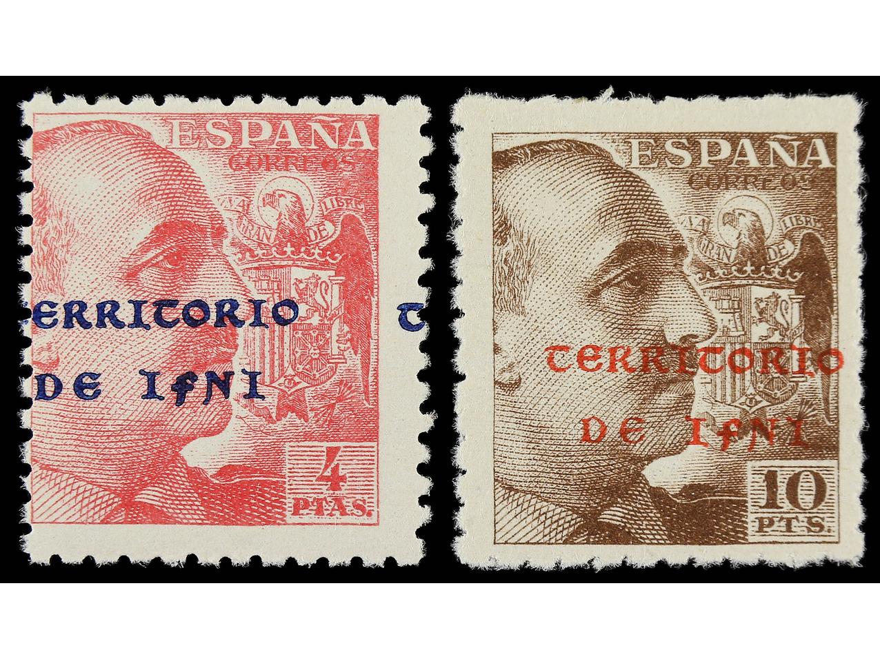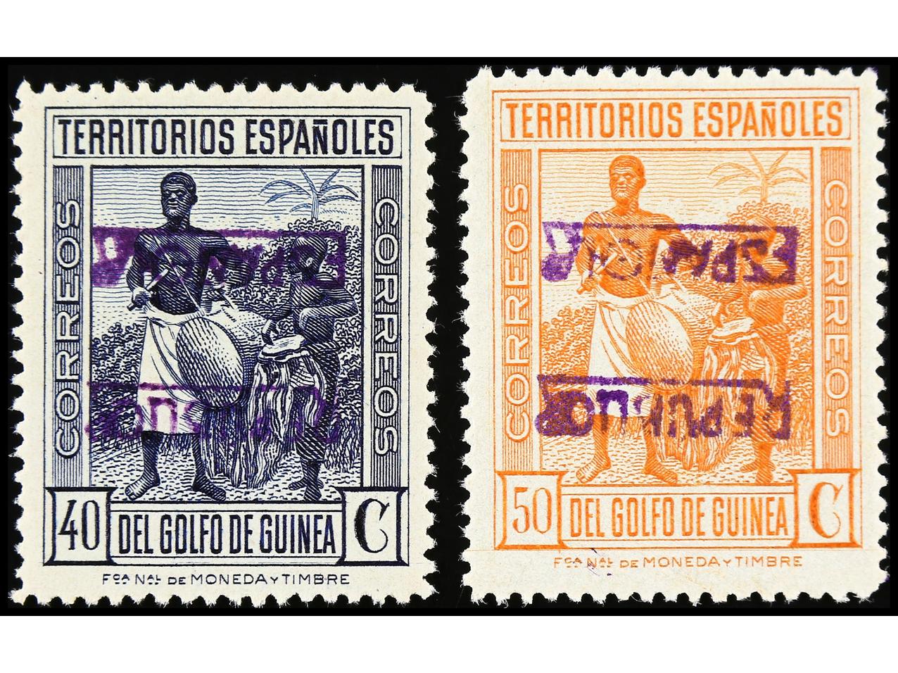 COLONIAS ESPAÑOLAS: GUINEA. 40 cts. azul y 50 cts. naranja HABILITACIÓN INVERTIDA. RAROS. Ed.224B/225Bhi. (Image1) (Image2)