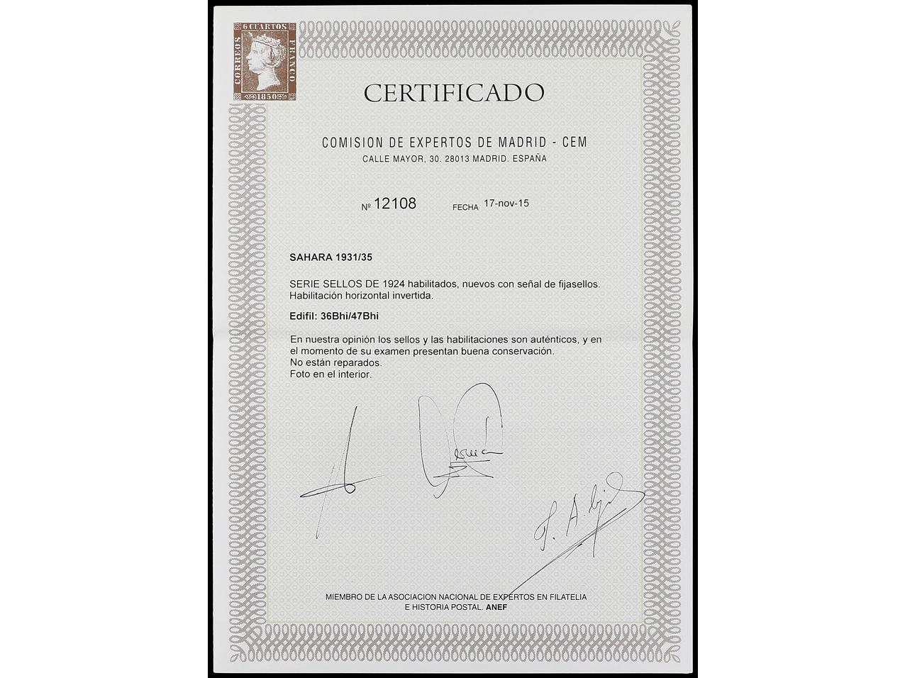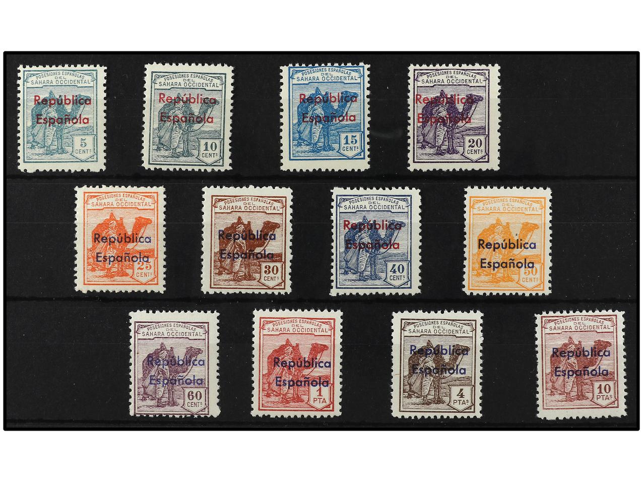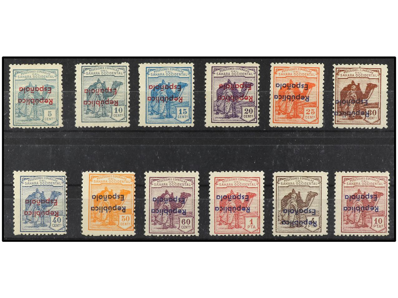 COLONIAS ESPAÑOLAS: SAHARA. SERIE COMPLETA, 12 valores. Habilitación HORIZONTAL INVERTIDA. Cert. CEM. Ed.36/47Bhi. Cat. 625€. (Image1) (Image2)
