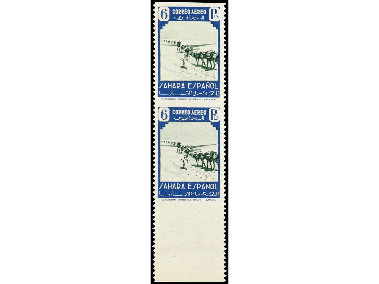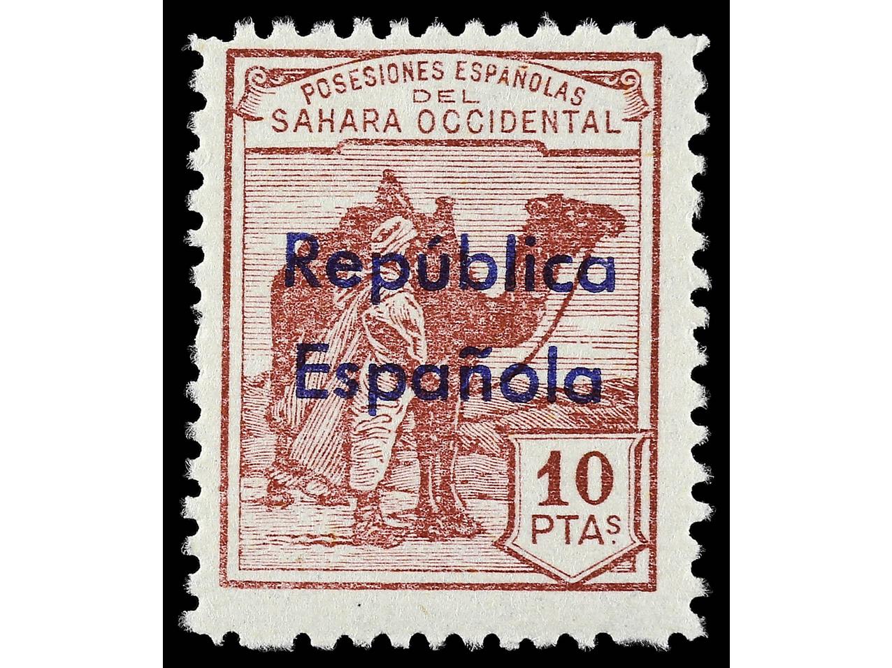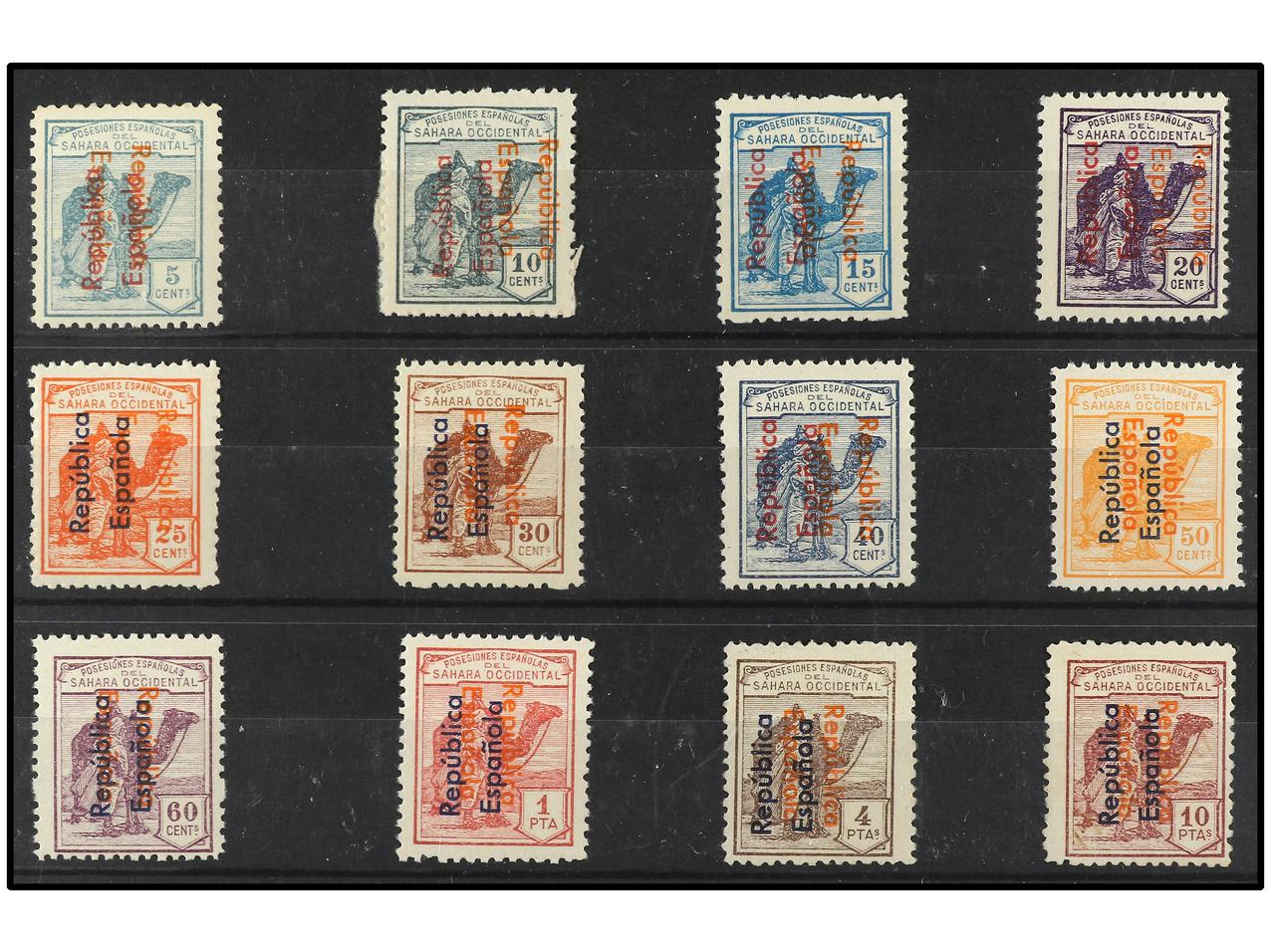COLONIAS ESPAÑOLAS: SAHARA. SERIE COMPLETA. 12 valores. DOBLE HABILITACIÓN VERTICAL. UNA INVERTIDA. MUY RARA. Ed.36/47C. Cat. 1.215€. (Image1) (Image2)