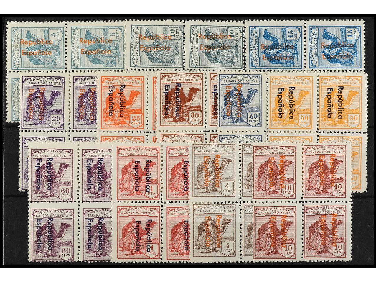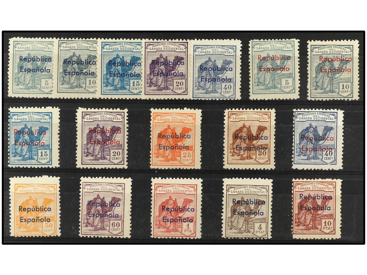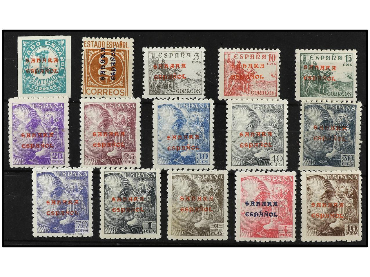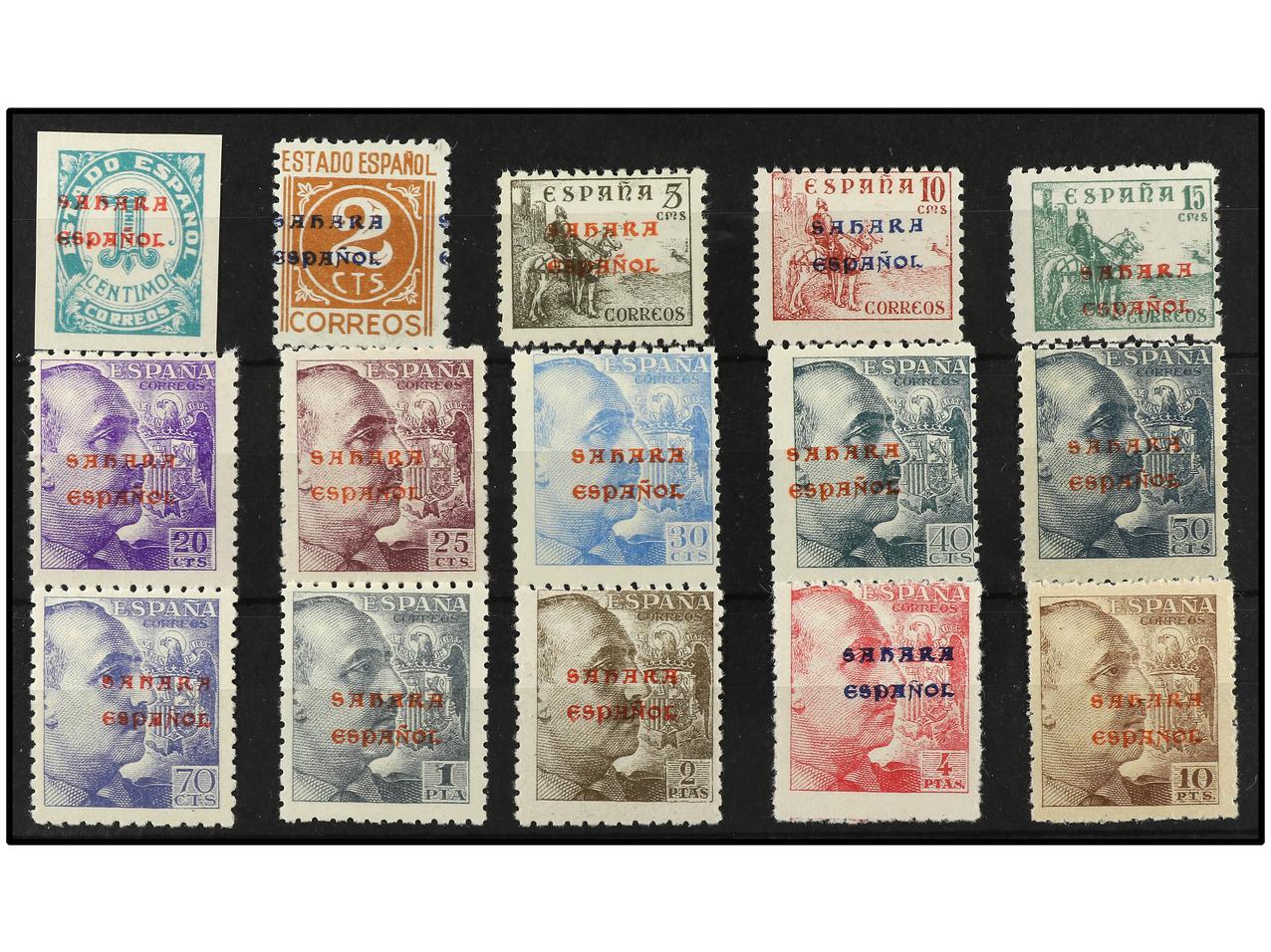 COLONIAS ESPAÑOLAS: SAHARA. SERIE COMPLETA, 17 valores. Habilitación HORIZONTAL y CAMBIOS DE COLOR en la habilitación. Ed.36/47B y 36/42 Bhcc. Cat. +610€.