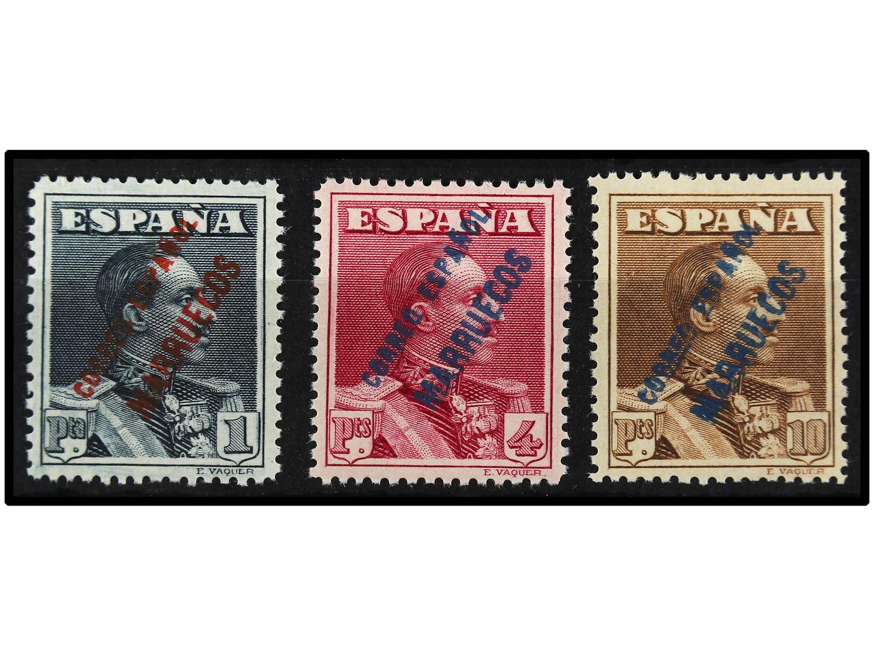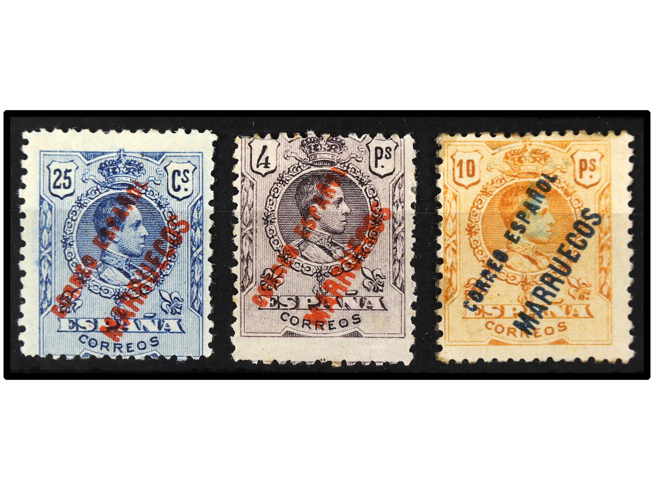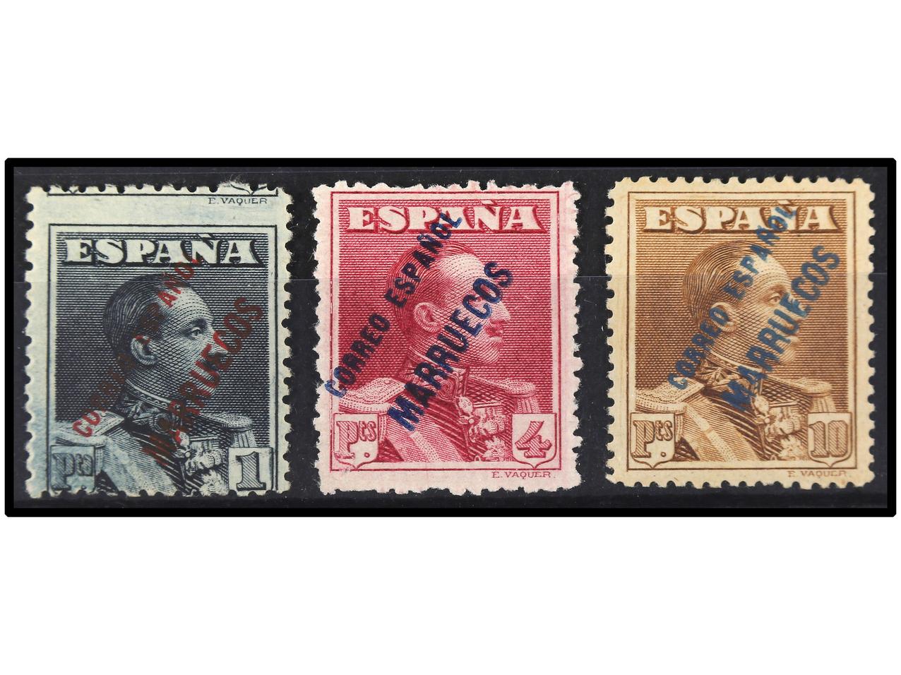 COLONIAS ESPAÑOLAS: MARRUECOS. SERIE COMPLETA, 4 valores. Bien centrados. RARA. Valor clave cert. GRAUS. Ed.13/6. Cat. +850€. (Image1) (Image2)