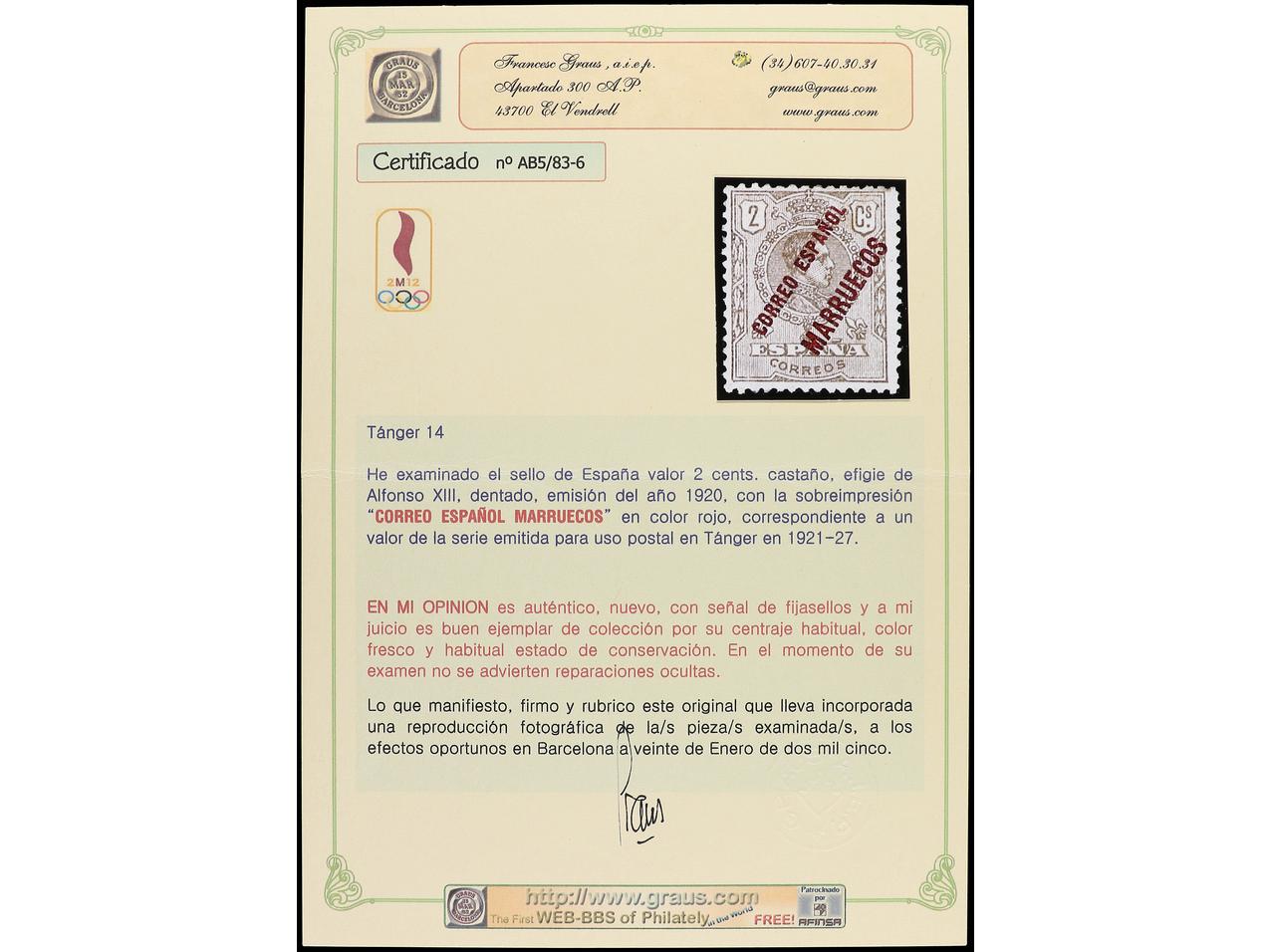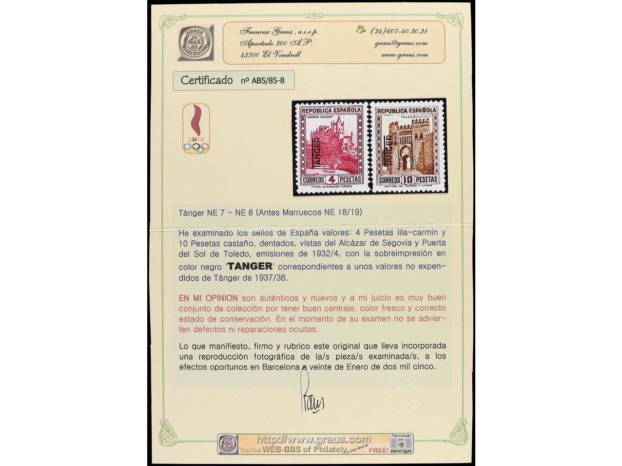 COLONIAS ESPAÑOLAS: TANGER. SERIE COMPLETA, 13 valores incluyendo NO EXPENDIDOS. Bien centrados. RAROS. Cert. GRAUS. Ed.85/95 y NE 7/8. Cat. + 1.050€.