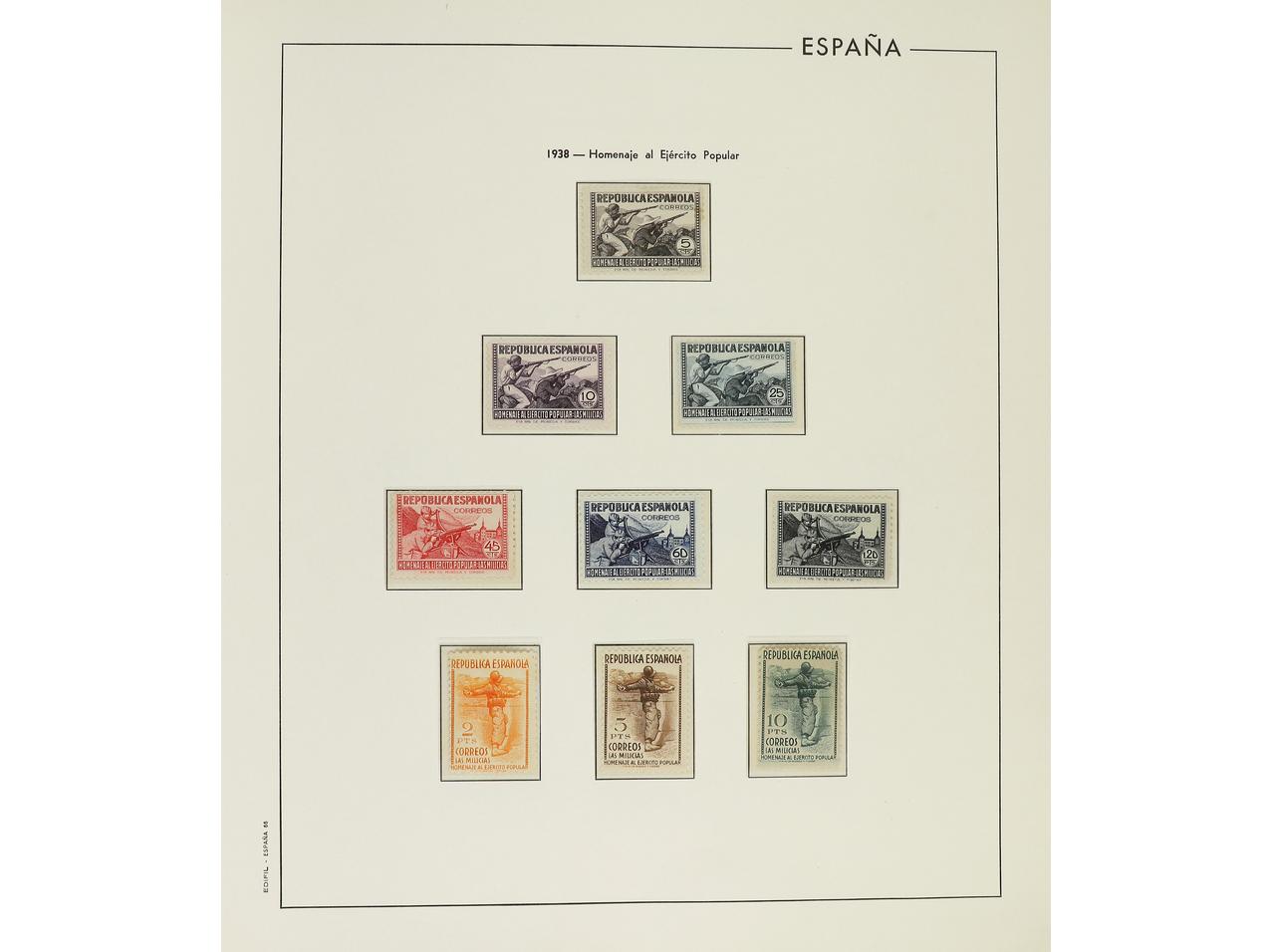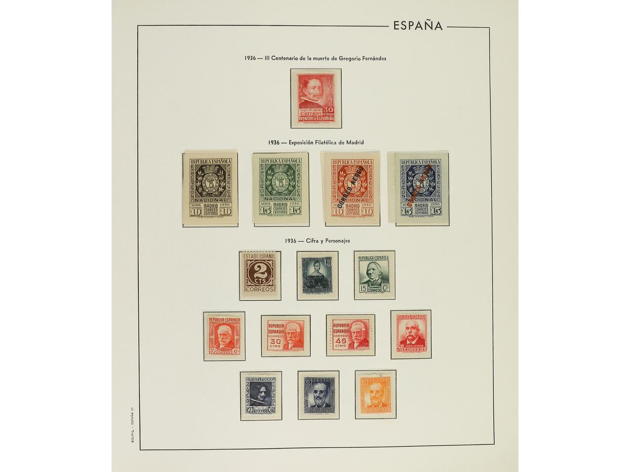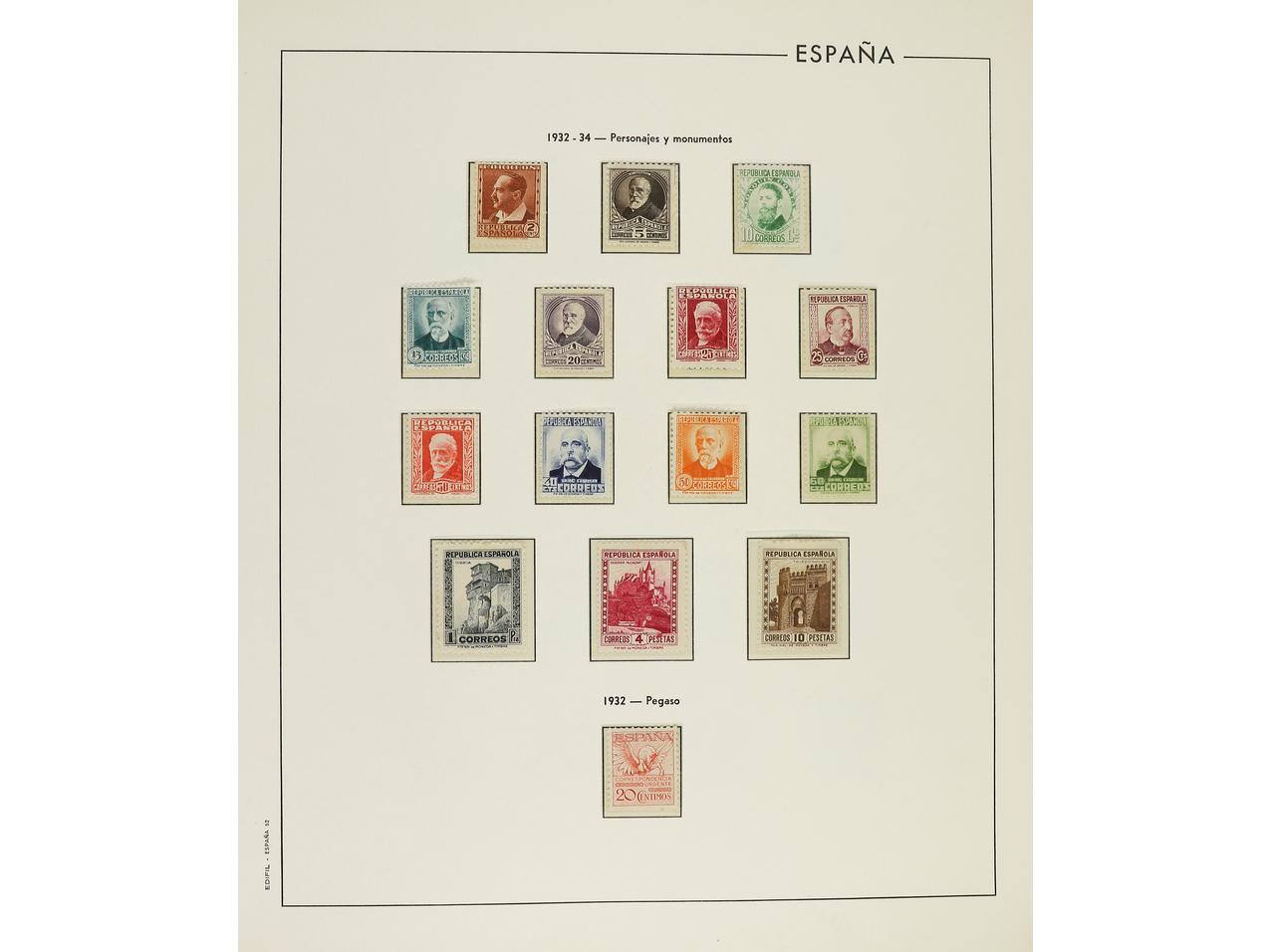 LOTES y COLECCIONES. ESPAÑA. Resto de colección montado en álbum Edifil de 1933 a 1938. Todos los sellos nuevos, sin fijasellos. Sólo hay ejemplares de poco valor. Cat. Edifil 2016, +543€.