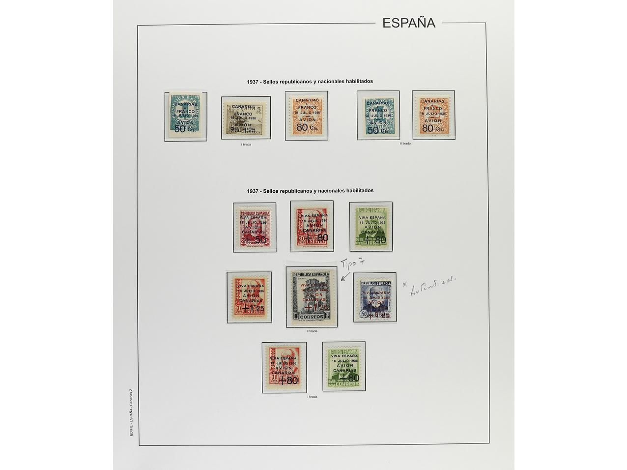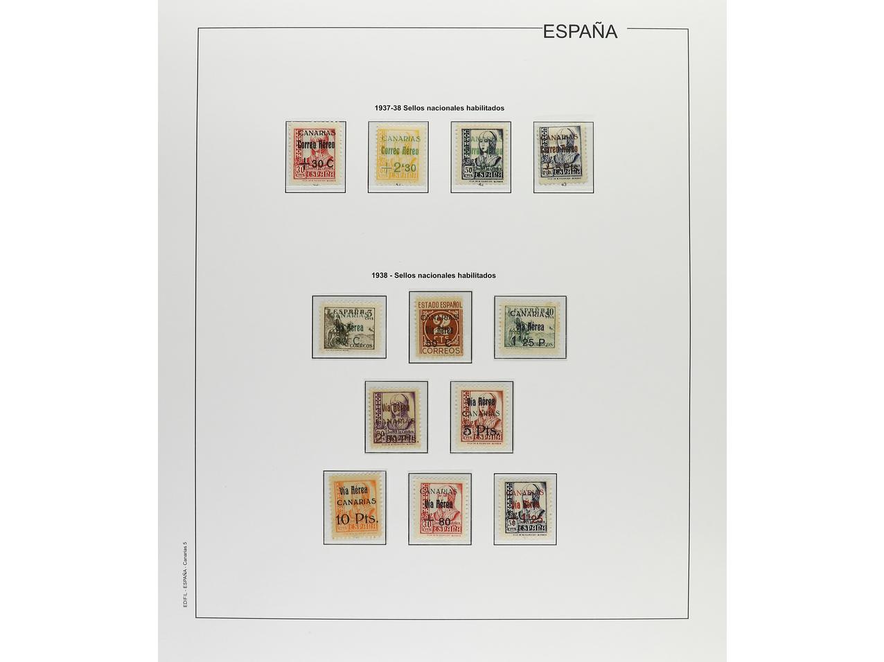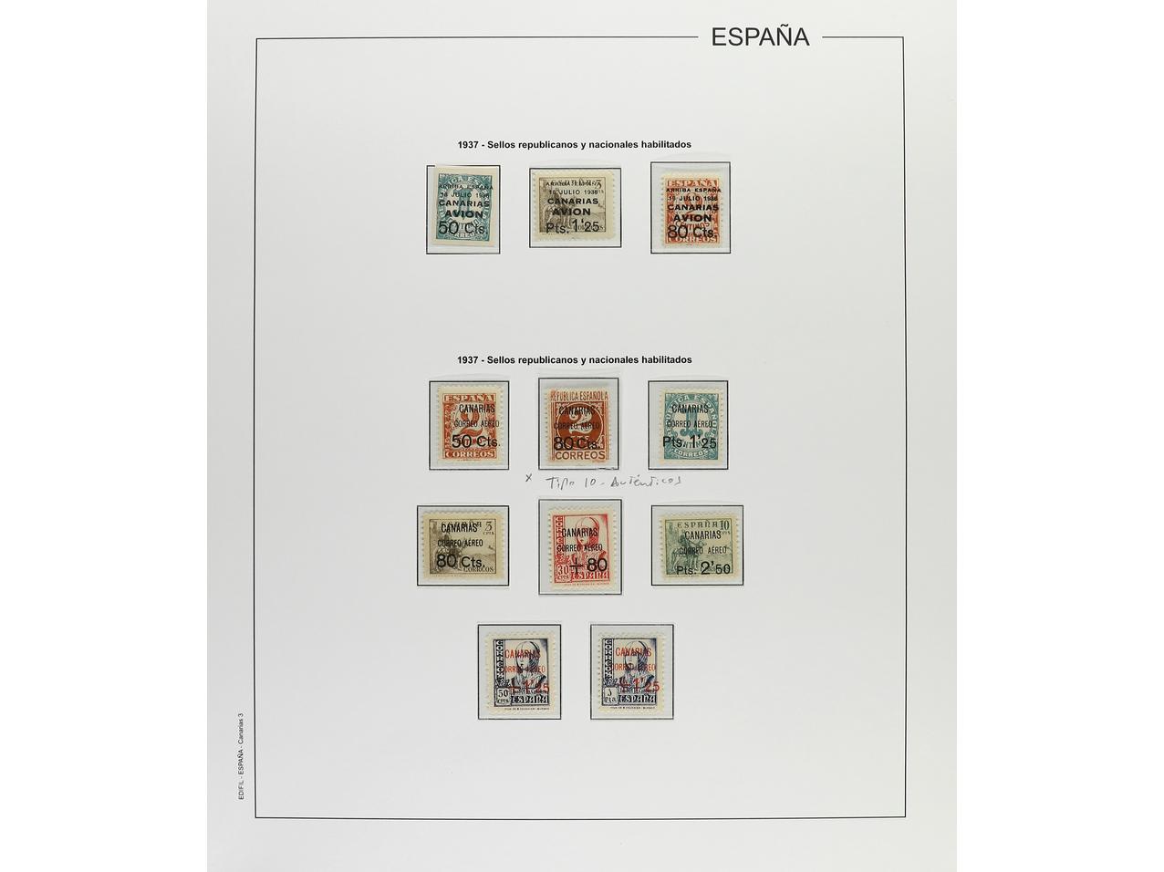 LOTES y COLECCIONES. CANARIAS. Colección montada en hojas Edifil. Sellos en nuevo, gran mayoría con fijasellos. Completo desde Edifil 1 a 62. Destacar series Ed. 14/7 y Ed. 24, auténticos y plancheados. Buen lote. Foto en web (ex-3). (Image1) (Image2)
