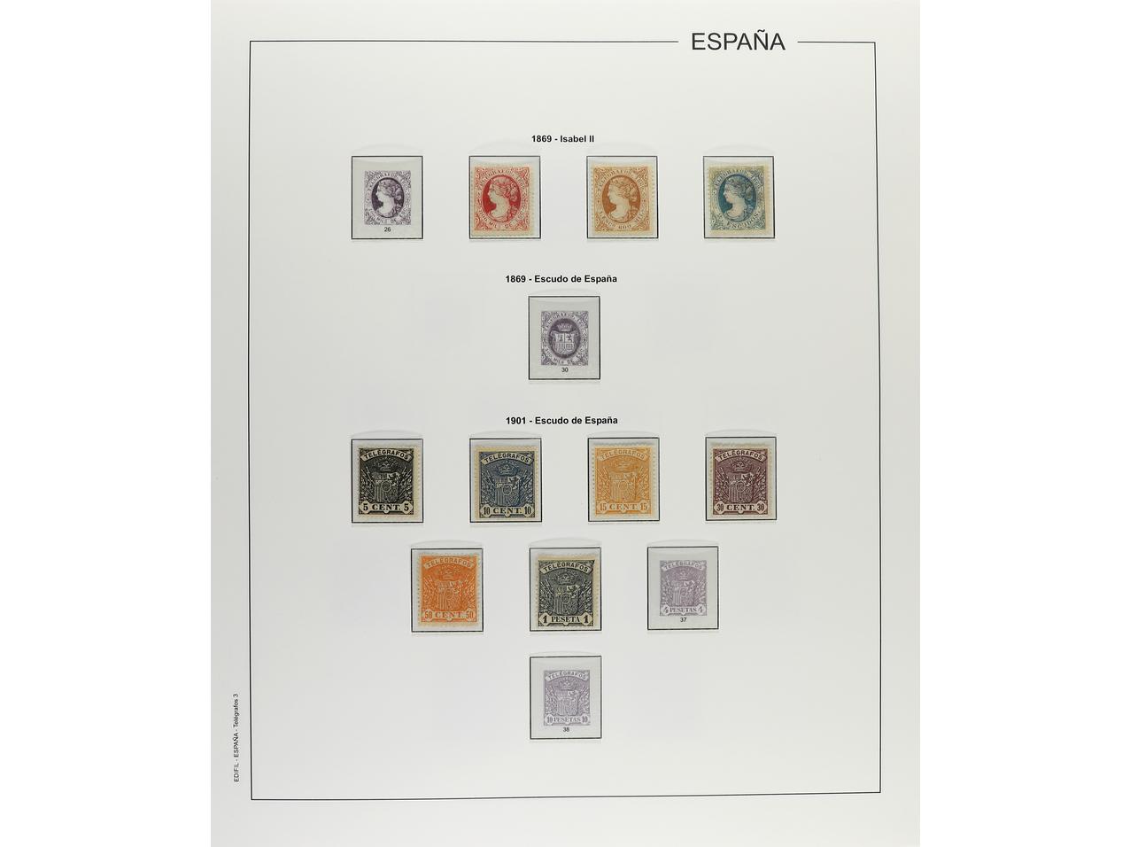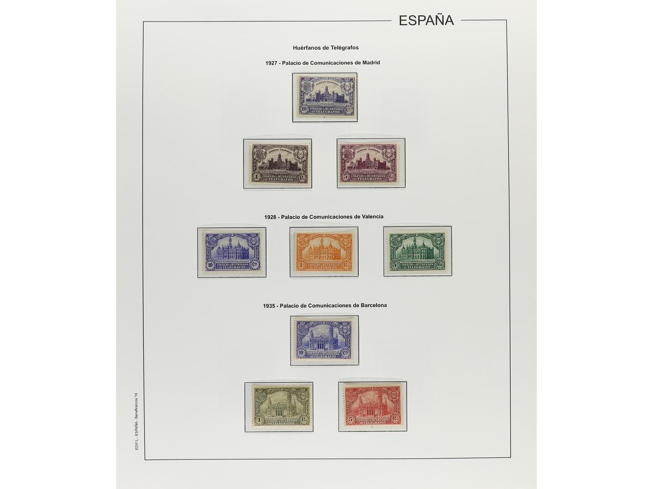 LOTES y COLECCIONES. ESPAÑA. VARIOS. Colección montada en álbum Edifil. Sellos nuevos con y sin fijasellos. Incluye Telégrafos, Beneficencia, Huérfanos de Telégrafos y algo de Taladrados. En general, buena calidad. A EXAMINAR. Valor