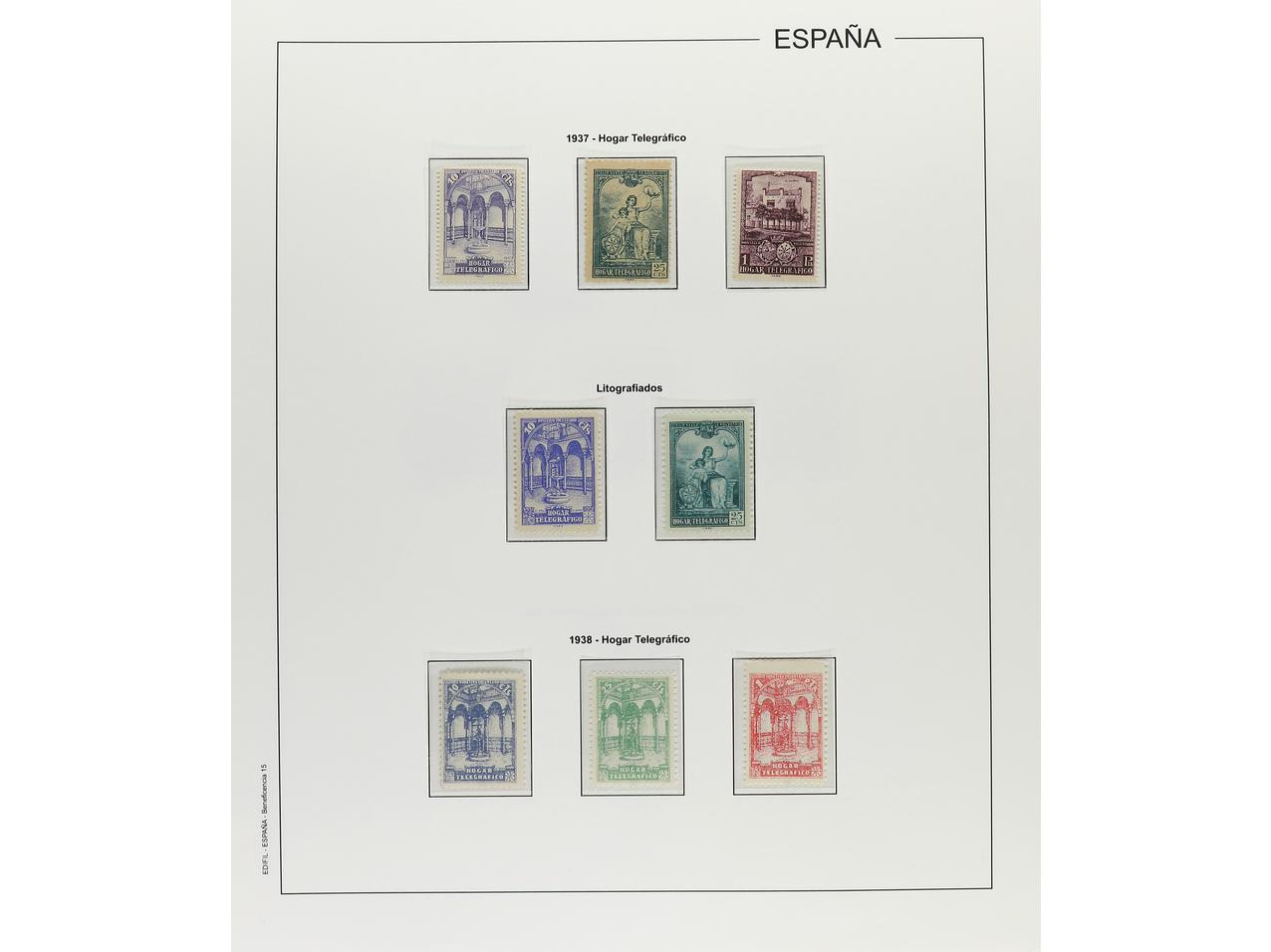 LOTES y COLECCIONES. ESPAÑA. BENEFICENCIA. Colección en hojas Edifil, muy completa. Sellos y hojas bloque en nuevo, con o sin fijasellos. En general, buena calidad. Valor catálogo aprox. 1.700€. A EXAMINAR. Foto en web (ex-4).