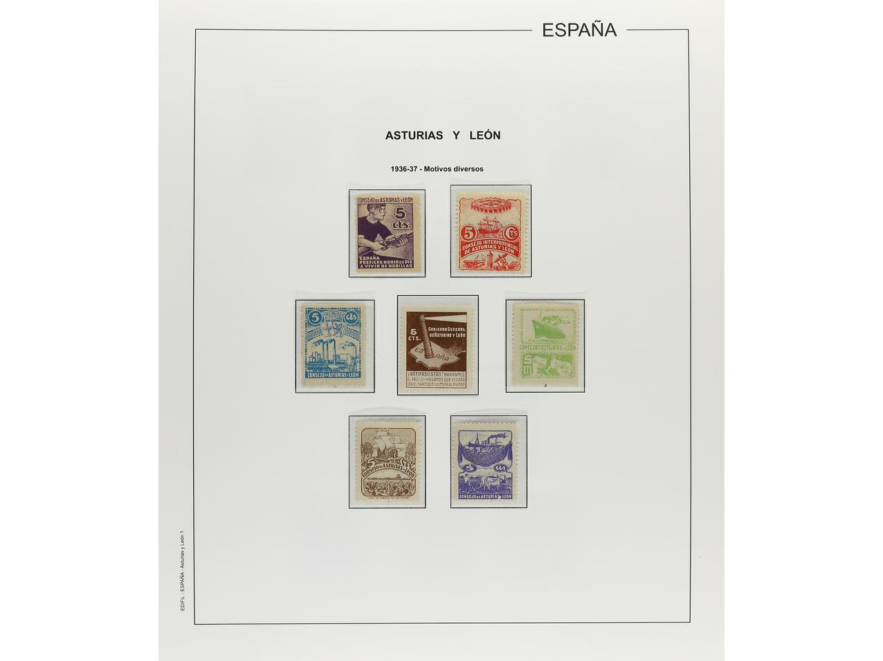 LOTES y COLECCIONES. BARCELONA y ASTURIAS y LEON. Colección en hojas Edifil. Sellos y hojitas con o sin fijasellos. En general, buena calidad. Alguna hoja, pequeños puntos tonalizados. Valor catálogo aprox. 1.900€. Foto en web (ex-2).