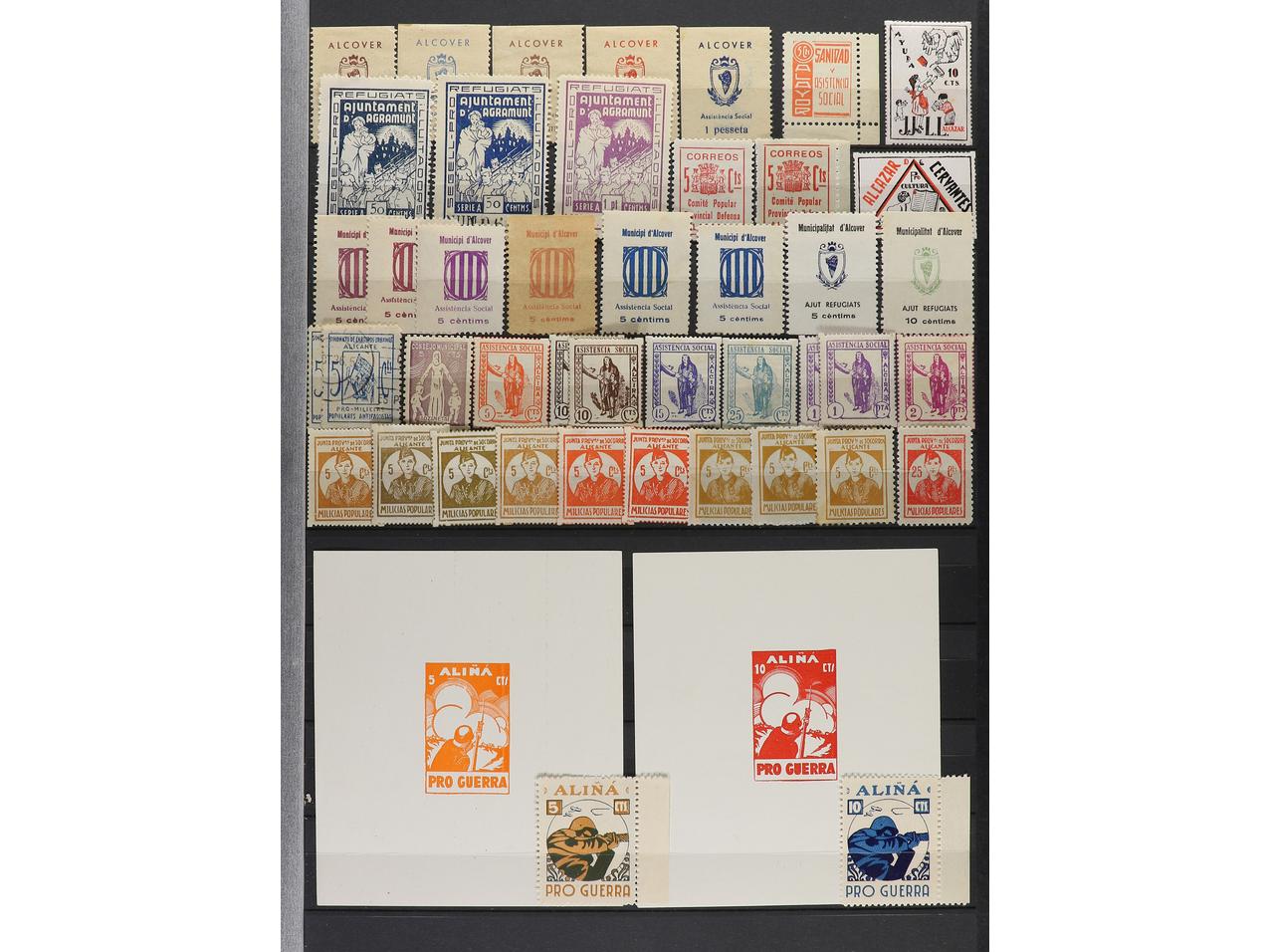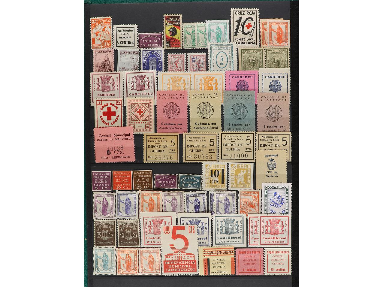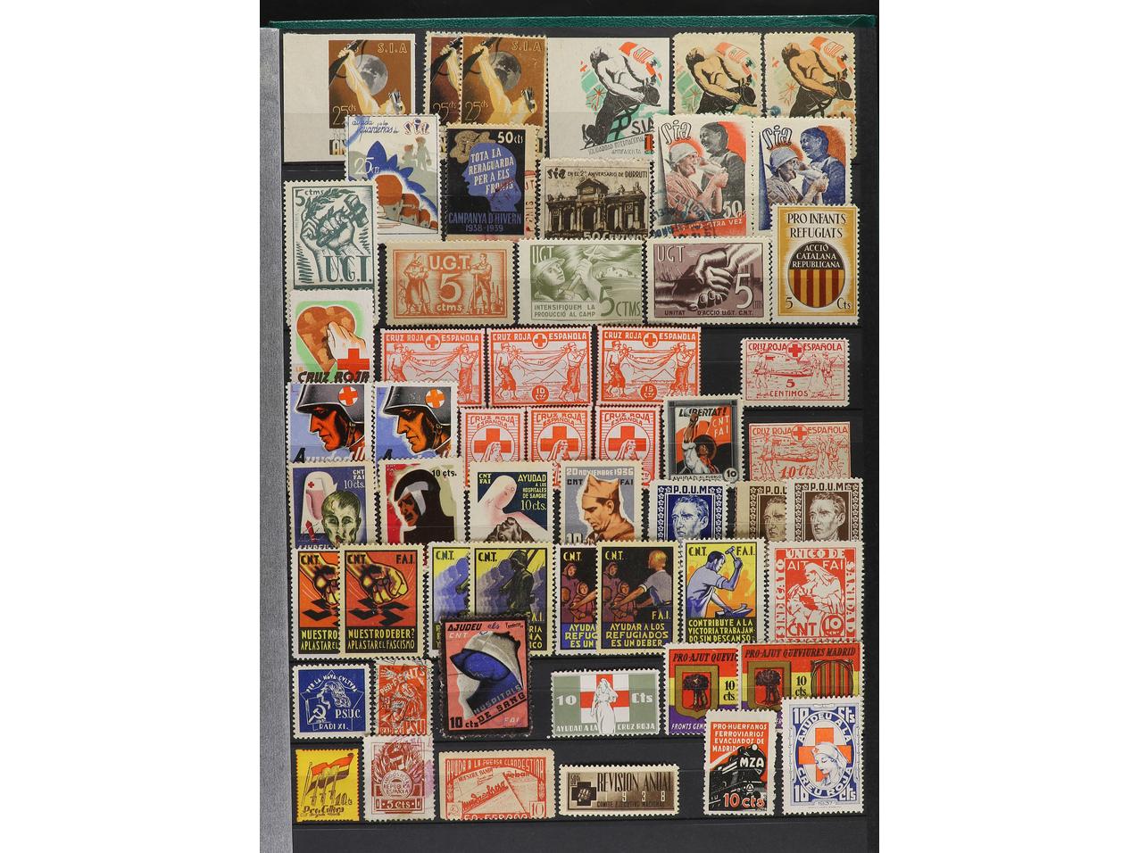 LOTES y COLECCIONES. ESPAÑA GUERRA CIVIL. ZONA REPUBLICANA. Conjunto montado en clasificador formado por más de 1.000 viñetas, 59 hojitas y 1 carnet. Mayoría en nuevo y diferentes. Foto en web (ex-11). (Image1) (Image2)