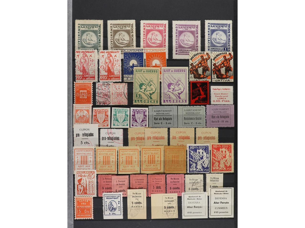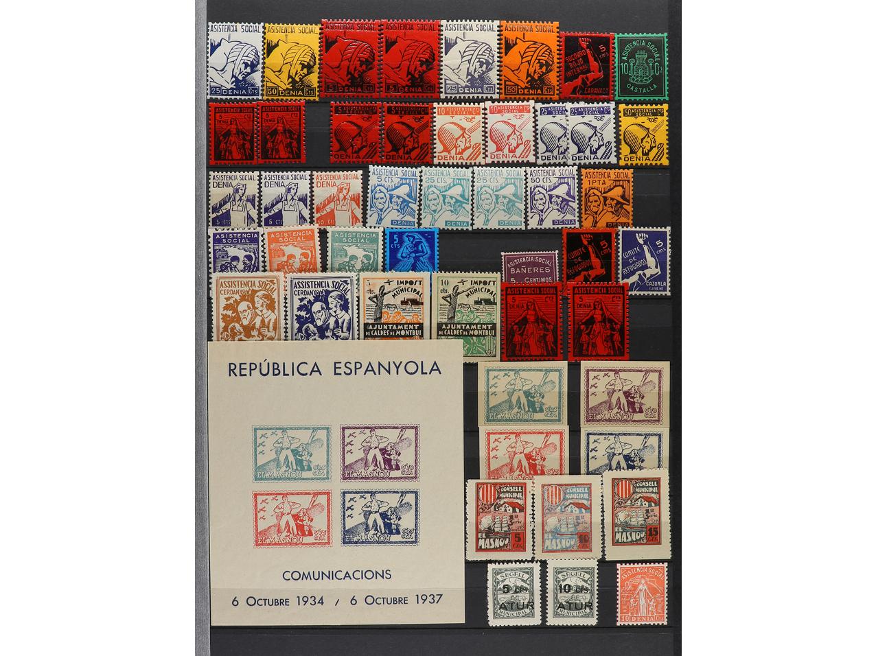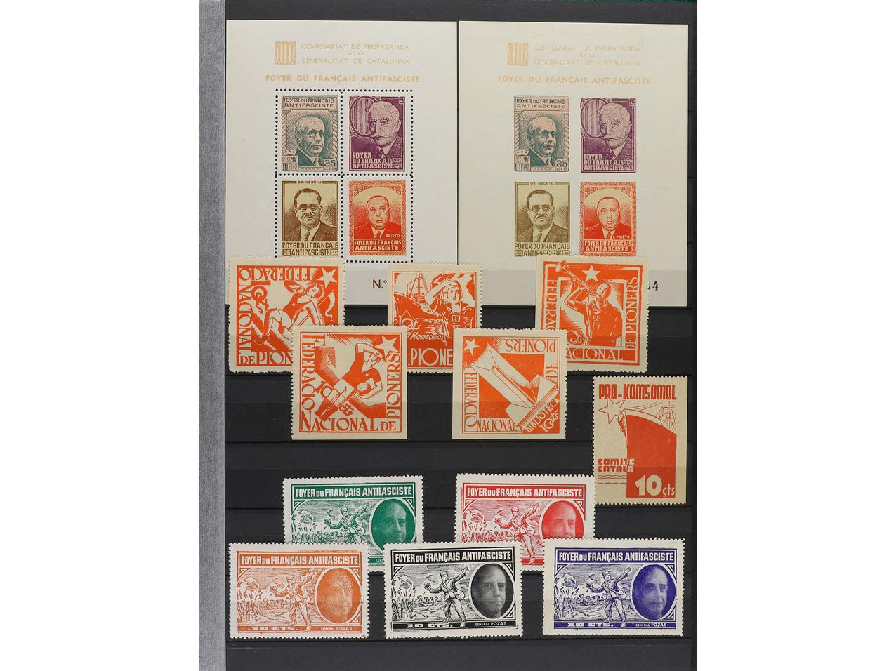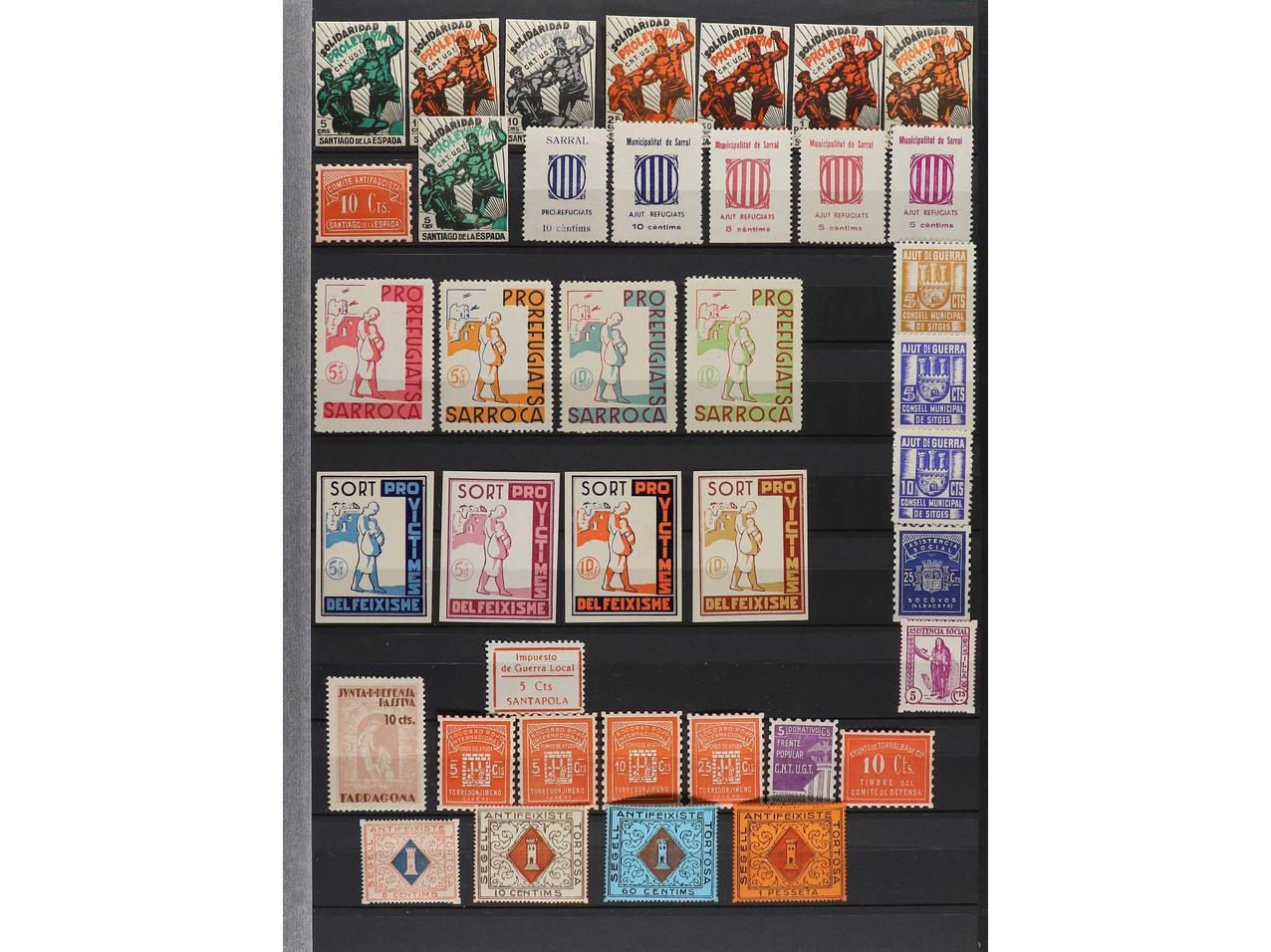 LOTES y COLECCIONES. ESPAÑA GUERRA CIVIL. ZONA REPUBLICANA. Conjunto montado en clasificador formado por más de 1.000 viñetas, 59 hojitas y 1 carnet. Mayoría en nuevo y diferentes. Foto en web (ex-11). (Image1) (Image2)