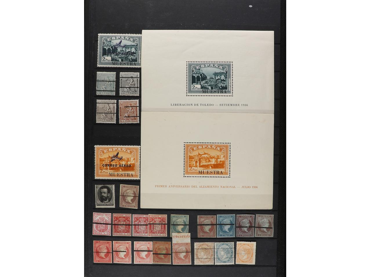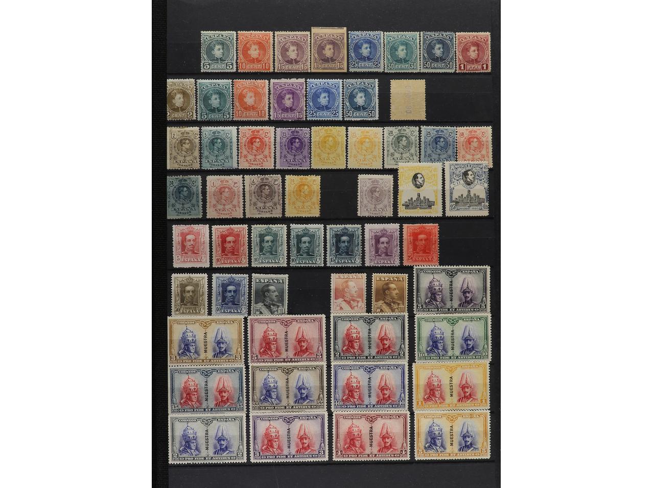LOTES y COLECCIONES. ESPAÑA y COLONIAS. Conjunto montado en clasificador con sellos, series, hojitas, etc. con distintas variedades. Muchas interesantes. Alto valor en catálogo. Foto en web (ex-10). (Image1) (Image2)