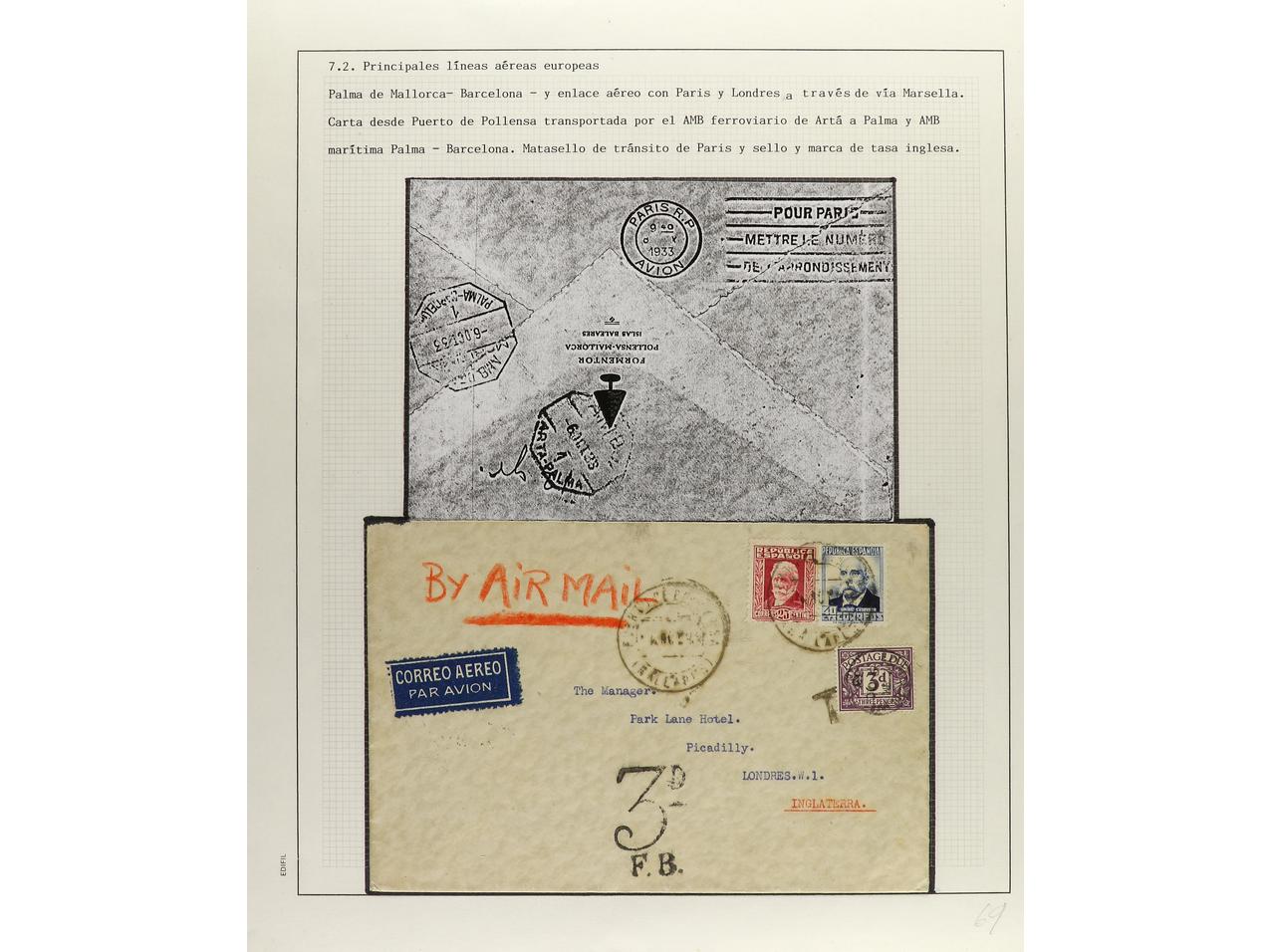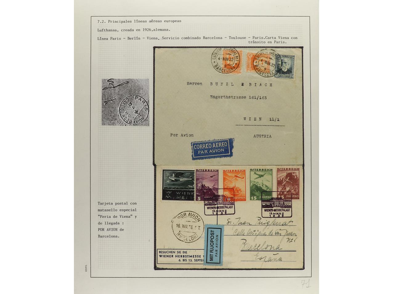 LOTES y COLECCIONES. CORREO AÉREO. 1930-1936. Colección en páginas de álbum con vuelos de España al exterior y del exterior a España. INTERESANTE CONJUNTO, en total 20 cartas o tarjetas. (Image1) (Image2)