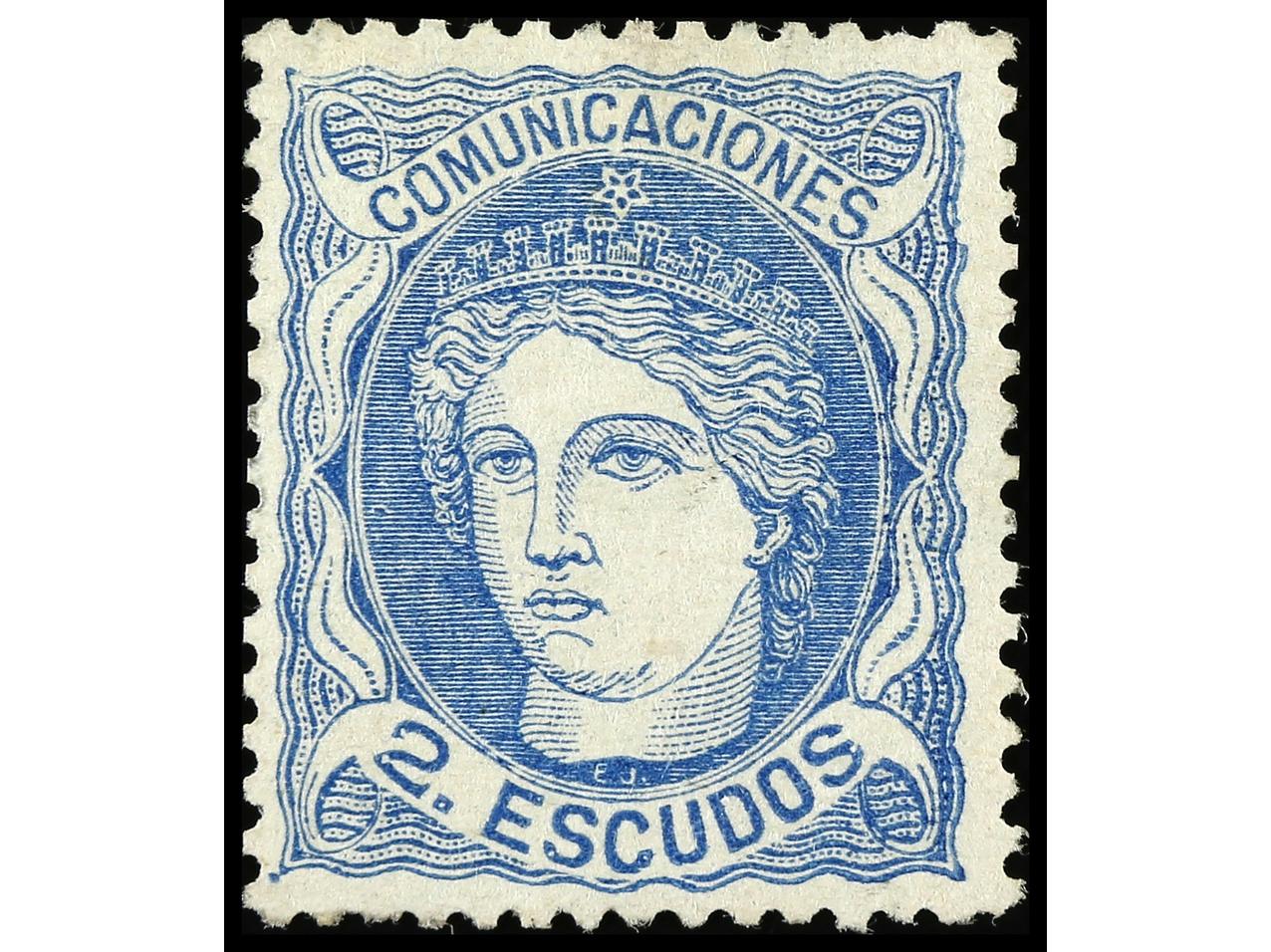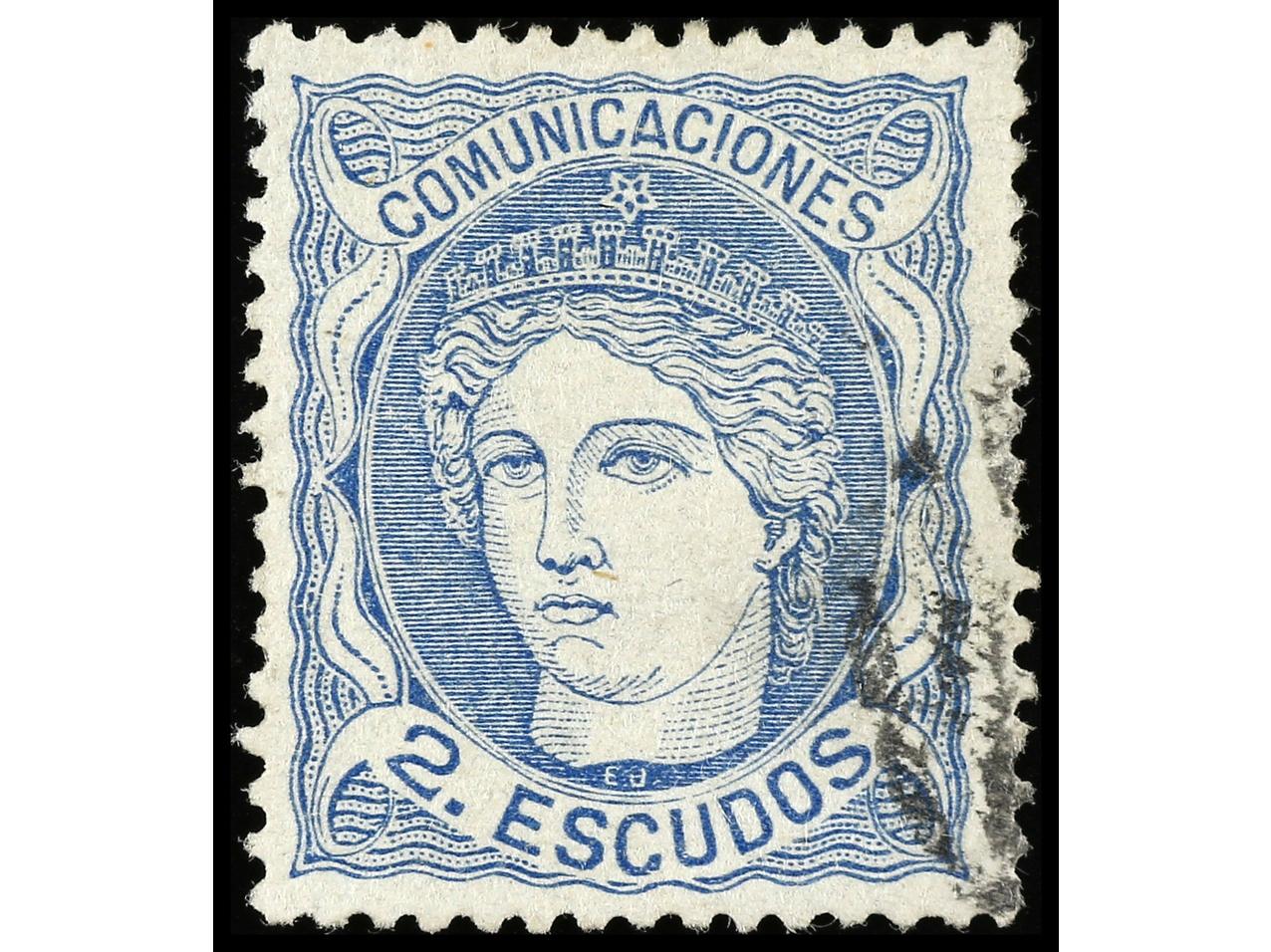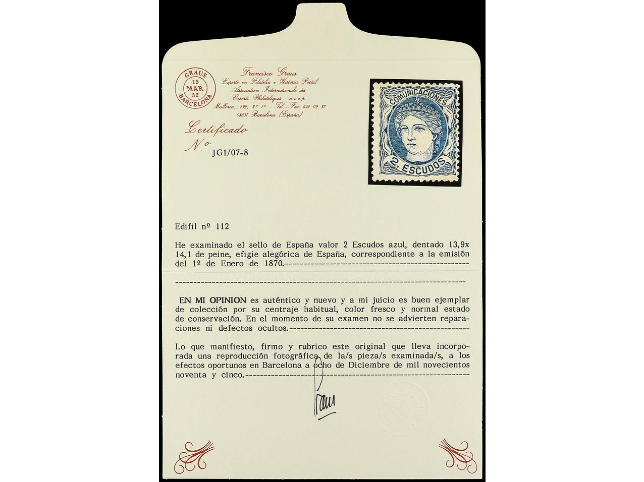 ESPAÑA. 2 escudos azul. Buen ejemplar. Cert. GRAUS. Ed.112. Cat. 1.300€. (Image1) (Image2)