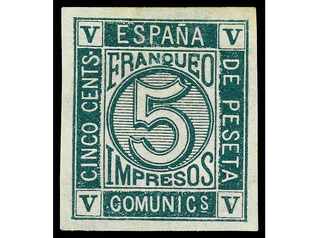 ESPAÑA. 5 cts. verde SIN DENTAR. PRECIOSO. Ed.117s. Cat. 335€. (Image1)