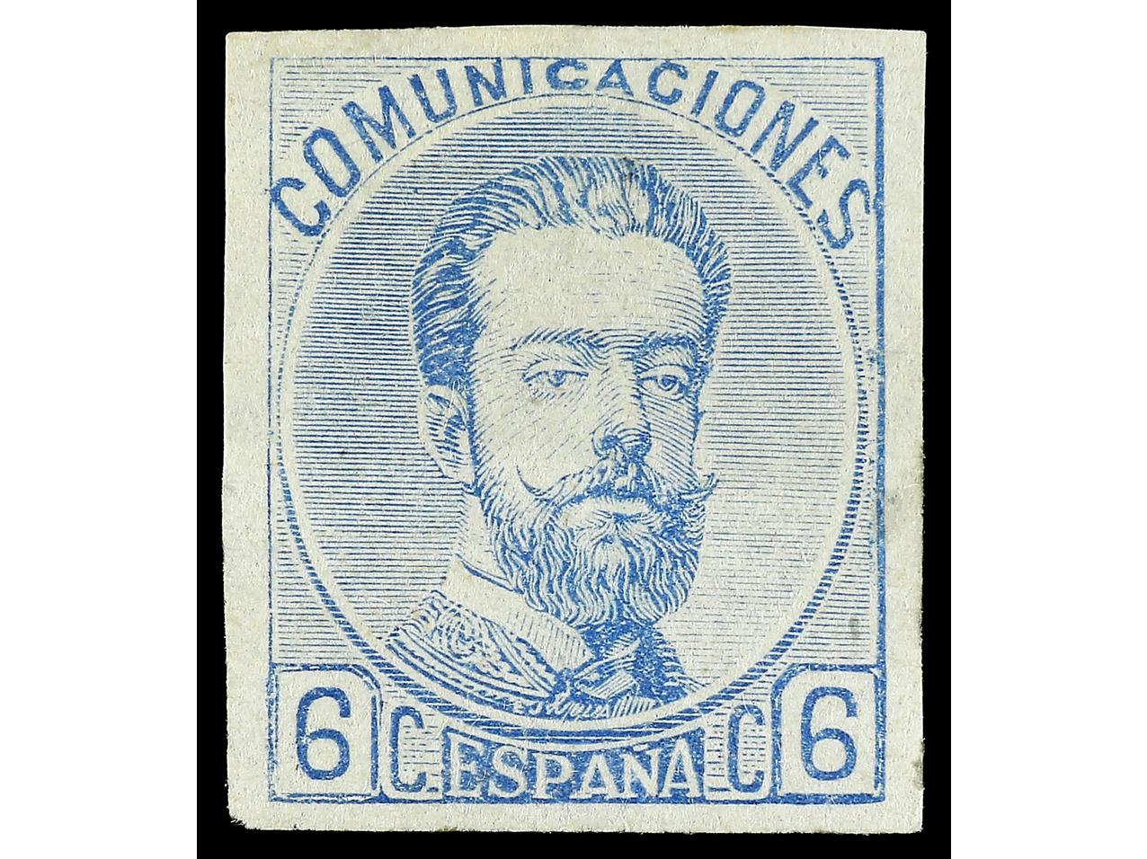 ESPAÑA. 6 cts. azul SIN DENTAR. RARÍSIMO, pocos ejemplares conocidos. Ed.119s. (Image1)