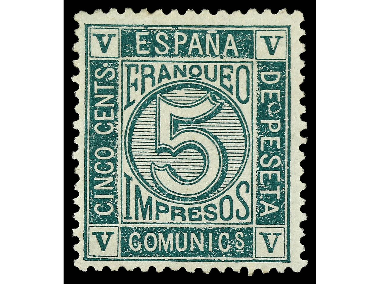 ESPAÑA. 5 cts. verde. PIEZA DE LUJO. Cert. COMEX. Ed.117. Cat. 260€. (Image1) (Image2)