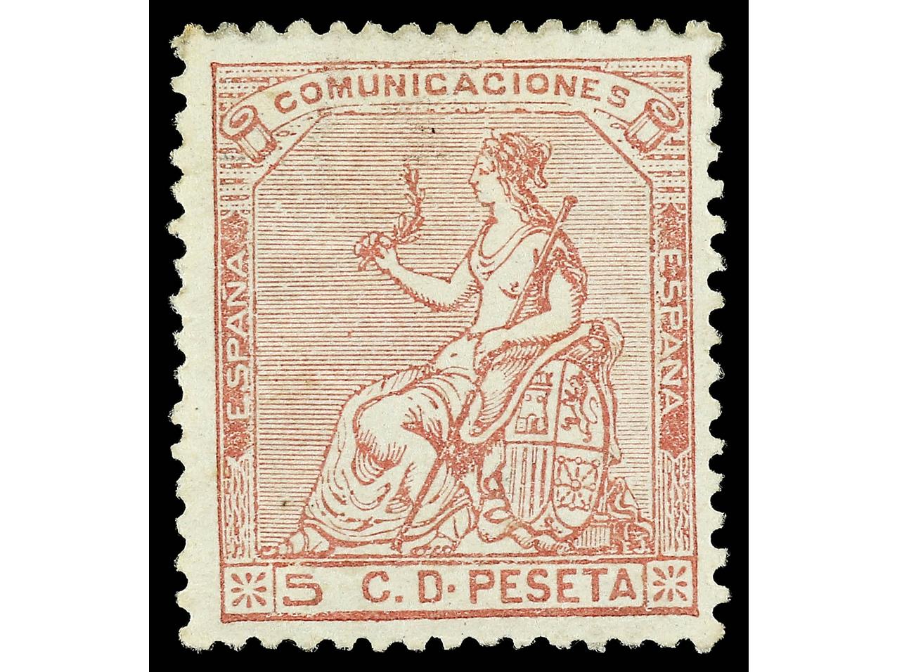 ESPAÑA. 1 peseta lila, muy bien centrado. LUJO. Ed.127. Cat. 155€. (Image1)