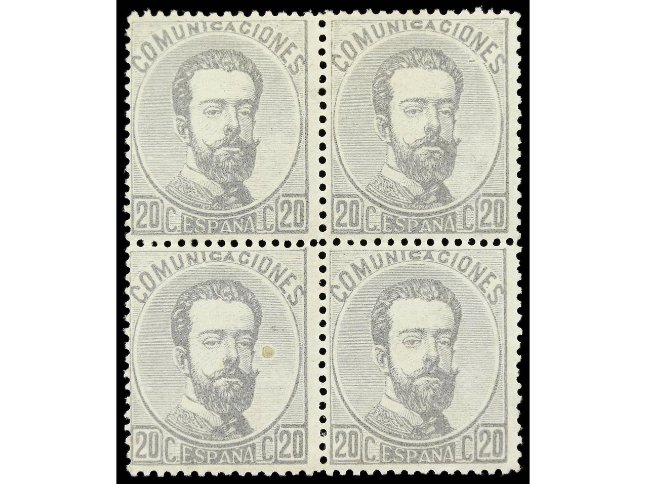 ESPAÑA. 20 cts. gris. Bloque de cuatro, muy bonito. Ed.123 (4). Cat. 775€. (Image1)